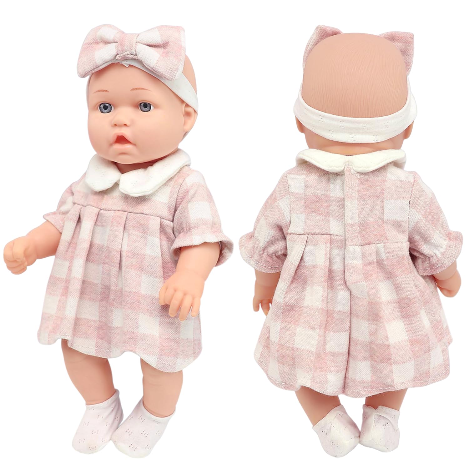 12″ Baby Doll Classic Checkered Dress & 6-Piece Accessories Gift Box Packaged – Soft Realistic Lifelike Baby Dolls for Toddlers & Little Girls