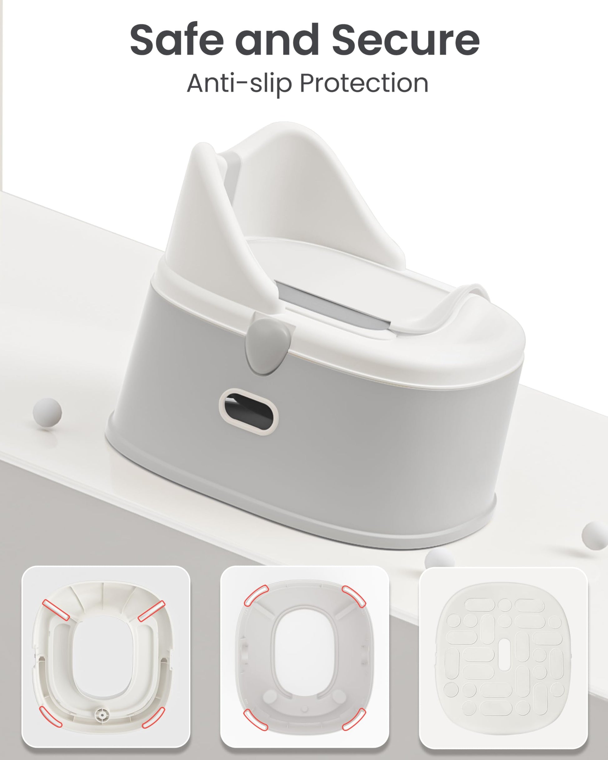 - 【SAFE AND SECURE】 The potty chair is designed with multiple anti-slip features: non-slip strips on the bottom of seat and step stool keep it stable and no worries about tipping over. The top of the step stool features a non-slip texture to ensure kids don’t slip while standing. Besides, the high backrest offers extra support, all these ensure a secure and comfortable experience for your child.