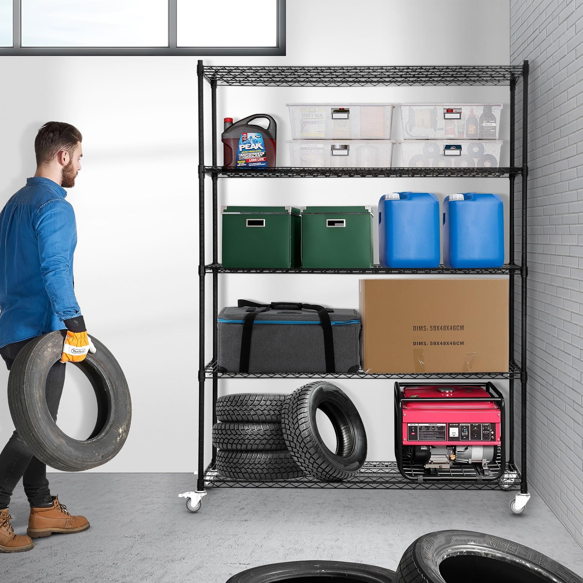5 Tier Wire Shelf Shelving Unit, 60"x 24"x82" Metal Storage Shelves