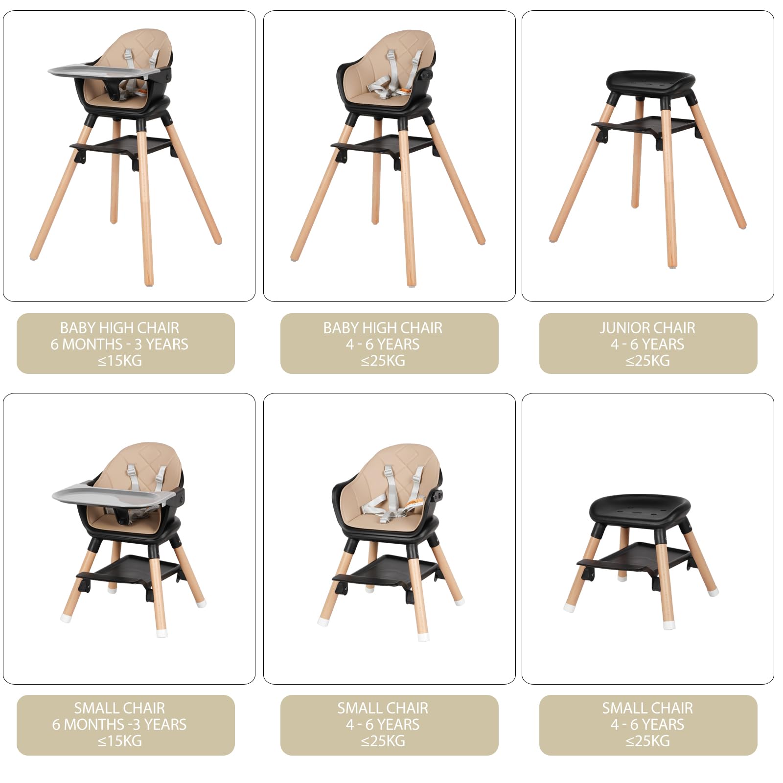 - 【6-in-1 Baby High Chair】As children grow, their needs change at each developmental stage. This convertible high chairs can be easily converted into multiple modes: standard baby high chair, small baby feeding chair, toddler chair with two-height adjustments,small stool, meeting your baby's diverse needs at every stage of growth.