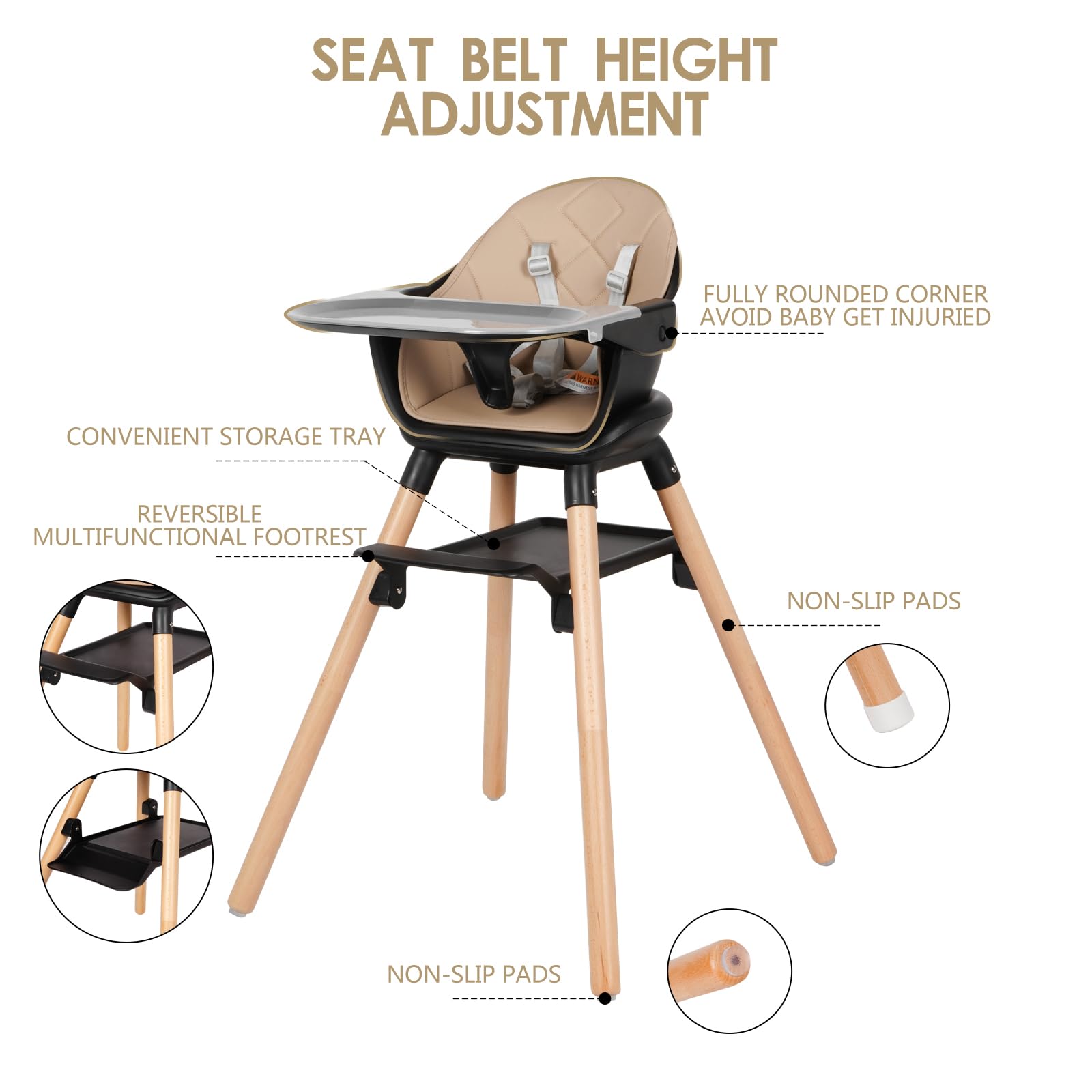 - 【High-Quality Safe Materials】This convertible infant high chair is made from food-grade PP material and smooth hardwood, safety, odor-free use, and BPA-free construction. The wooden high chair legs are crafted from premium beech wood, offering durability and a long service life. The toddler high chair’s smooth, waterproof PU seat is soft and skin-friendly, providing a comfortable experience for your baby, and is easy to clean-simply wipe with a damp cloth.