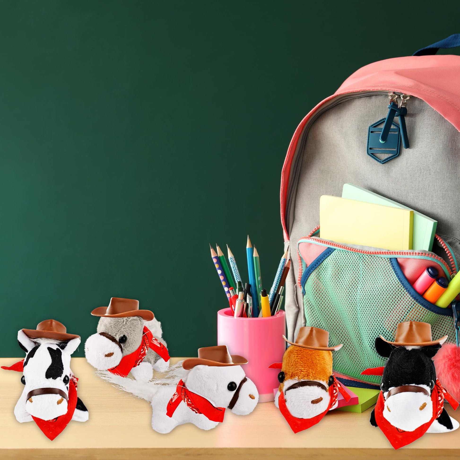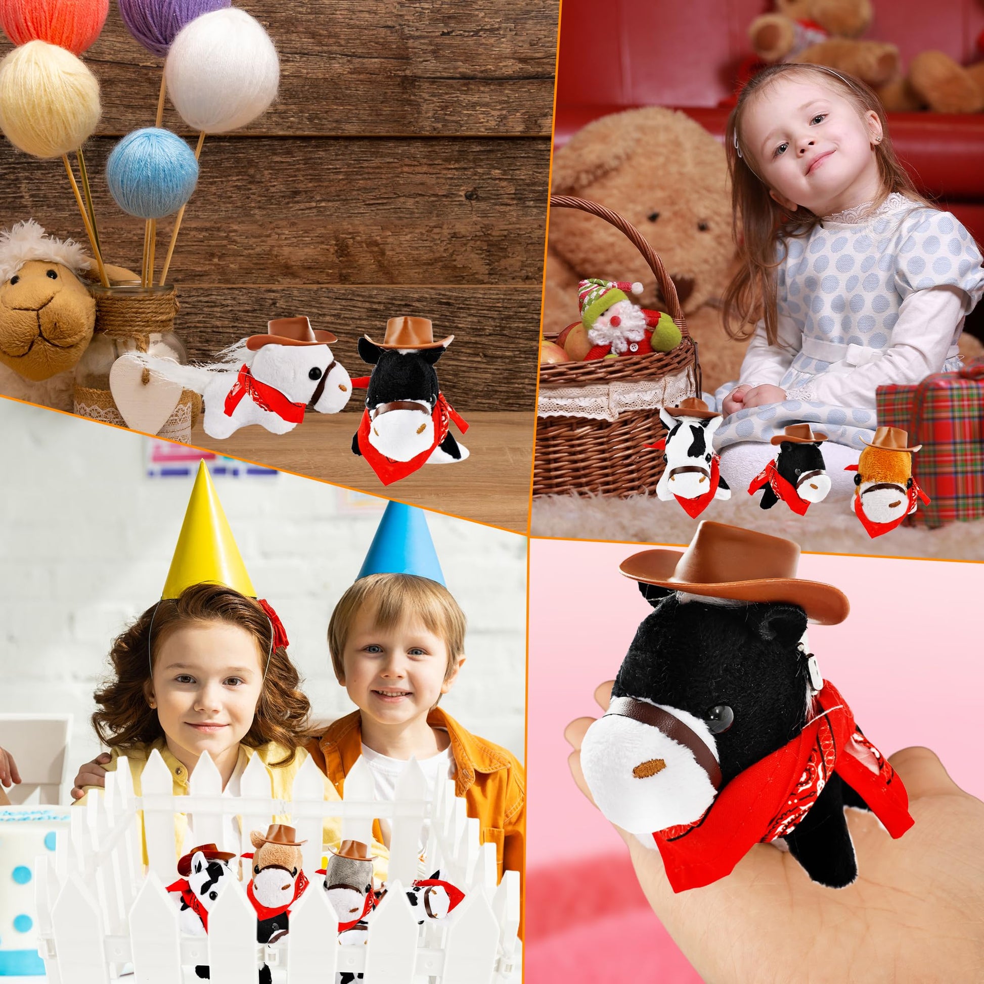 - You will receive 18 plush pony toys in the following colors: gray/light brown/dark brown/white/cow white/black, 3 of each color, 18 cowboy hats and 18 bandanas, and 8 adoption plastic fences, perfect for kids to play games, classroom education on adopting animals, and fostering a sense of responsibility in kids