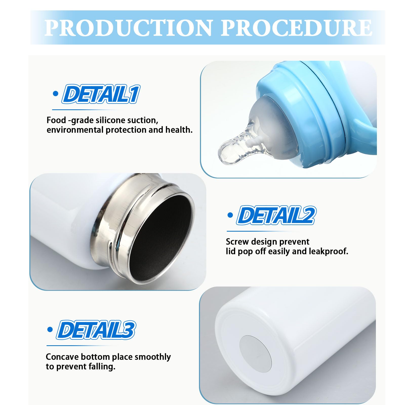 - Easy to Carry: our sublimation baby bottle with handles are suitable for babies to hold by themselves, and can be assembled and detached easily for thoroughly and quickly cleaning, and will not leave residue and smell that can give your babies a pleasant using experience