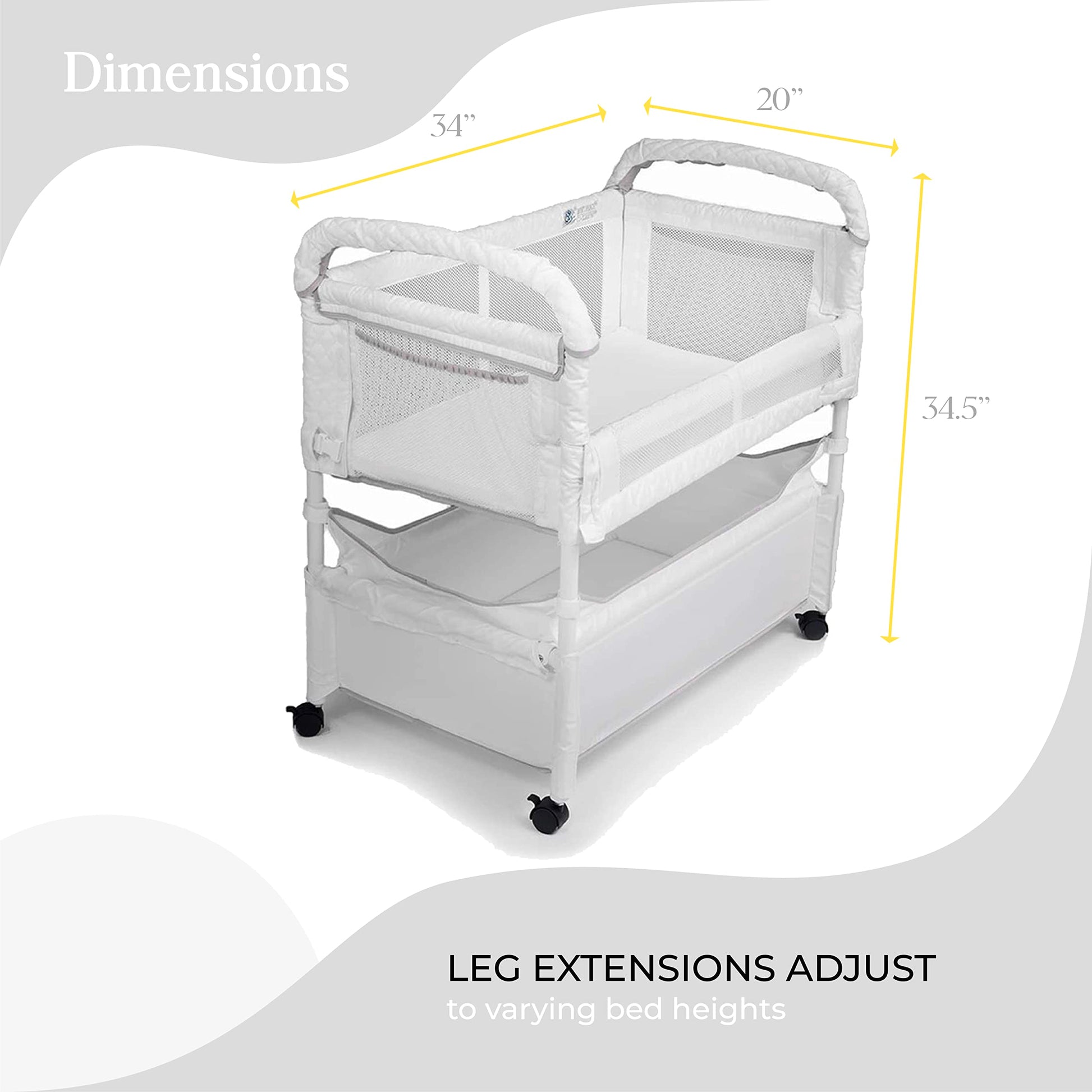 - HEIGHT-ADJUSTABLE LEGS make it easy to adjust bedside sleeper height to fit all types of beds so you can keep baby close by in the night; legs adjust between 24" and 30" in 2" increments