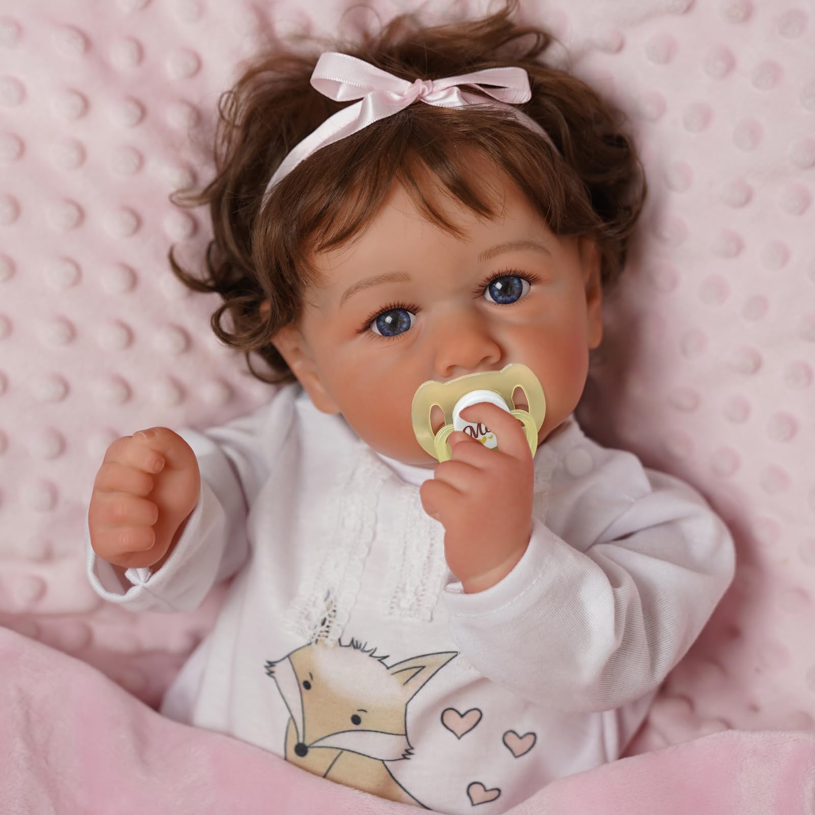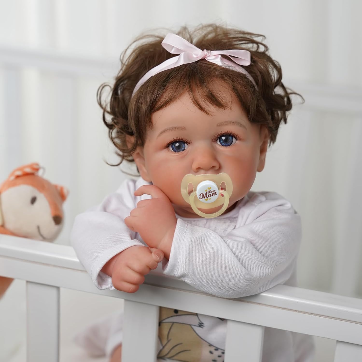 - Beautiful Appearance: Soft round cheeks, beautiful shining blue eyes. When you meet this lifelike reborn baby girl, she is looking forward to starting amazing games with you. She staring at you with a cheerful giggling, eager for you to take her home. You'll fall in love with your reborn baby girl from the first moment you hold her.