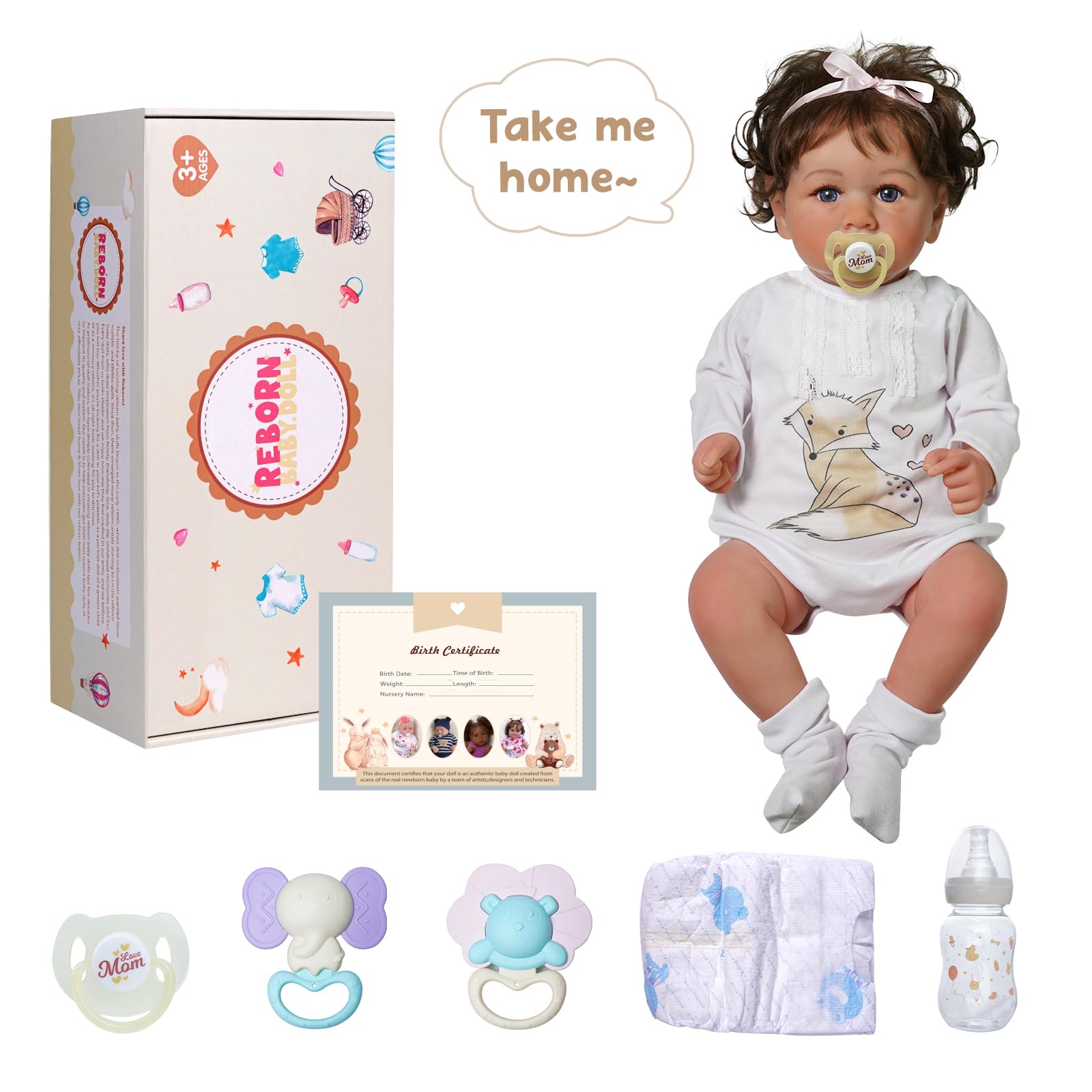 - What You Get: Real life doll comes in a beautiful gift box with a full set of newborn care accessories. Package includes 1 x reborn baby doll; 1 x nursing bottle; 1 x rattle set; 1 x magnetic pacifier; 1 x birth certificate and 1 x clothing set.