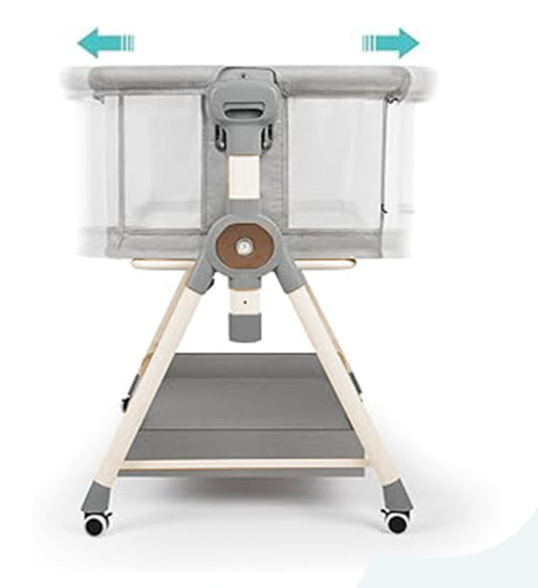 - UNIQUE HORIZONTAL ROCKING BASSINET: This is a manual rocking bassinet.The horizontal sway mode offers a gentle side-to-side rocking motion, which mimics the natural movements that soothe babies. Open the button and make it to be a rocking bassinet, the calming sway helps reduce fussiness, mom's Helper