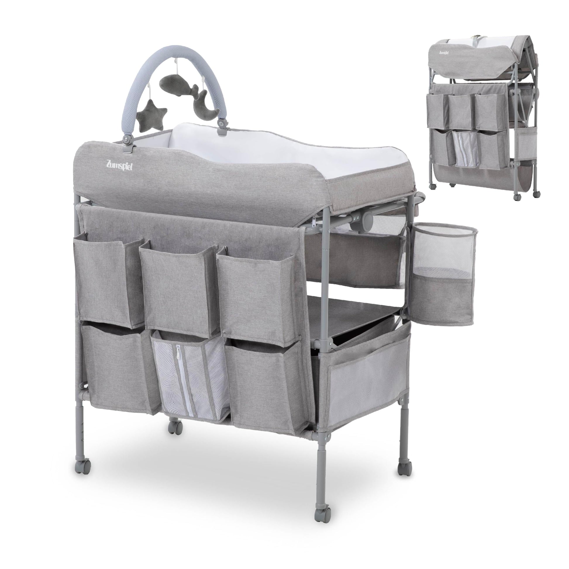 - [Sturdy & Waterproof Design] Crafted with a heavy-duty metal frame and waterproof changing pad, this baby changing table offers long-lasting use and easy cleanup. Soft plush toys keep your baby happy during diaper changes.