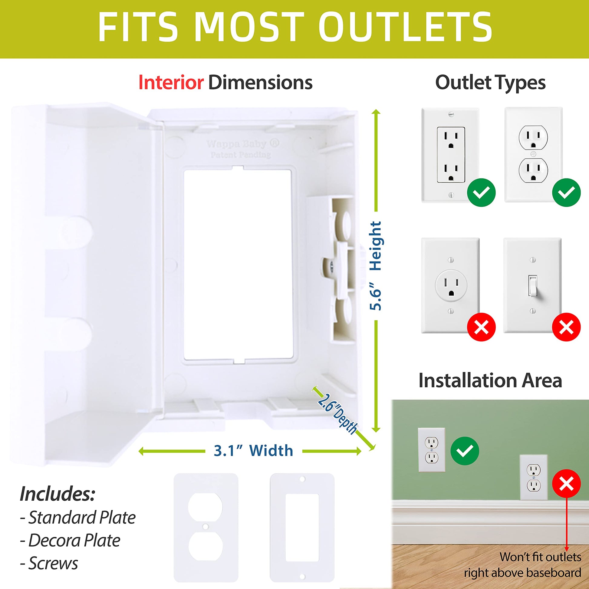 Baby Safety Outlet Cover BOX [Patent Pending] Double Lock for Much Better Toddler Proofing, Easier Operation, Simple 3 Step Install with Included Screws. Provides Extra Space Inside for Plugs,Adapters