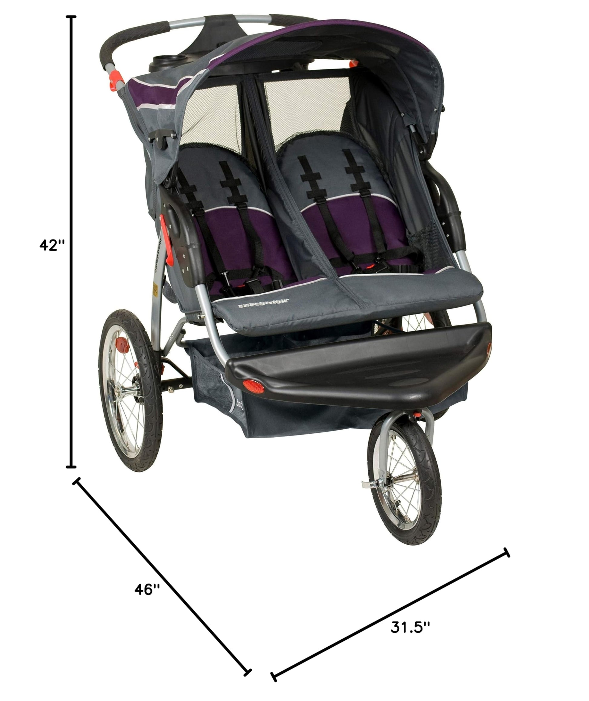 - Convenient parent tray includes two cup holders and covered storage compartment