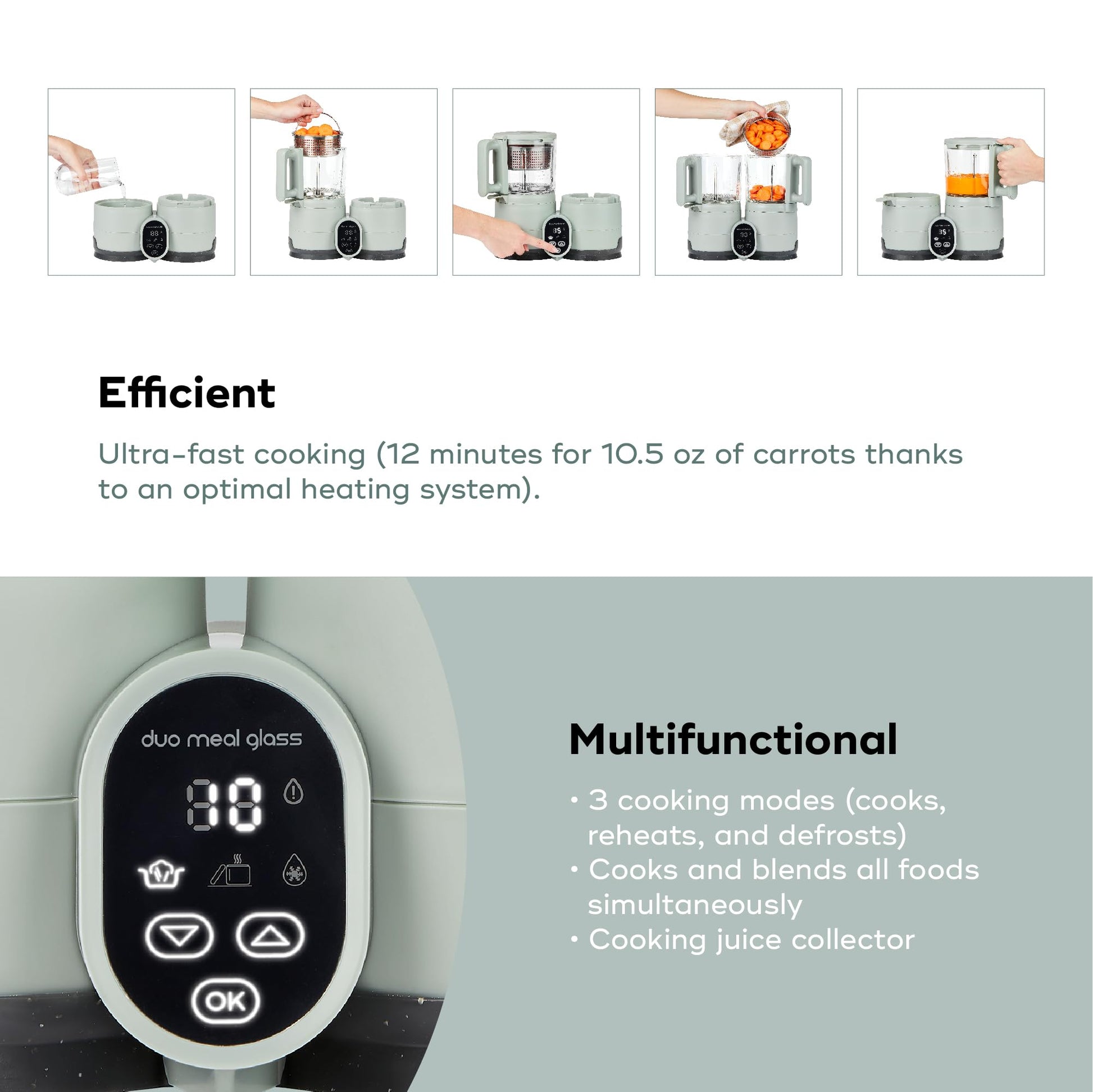 Babymoov Duo Meal Glass Baby Food Maker, Celadon Green – 4-in-1 Steamer, Blender, Defroster, and Heater with Programmable Timer, Large Capacity, Glass Bowls, Dishwasher Safe