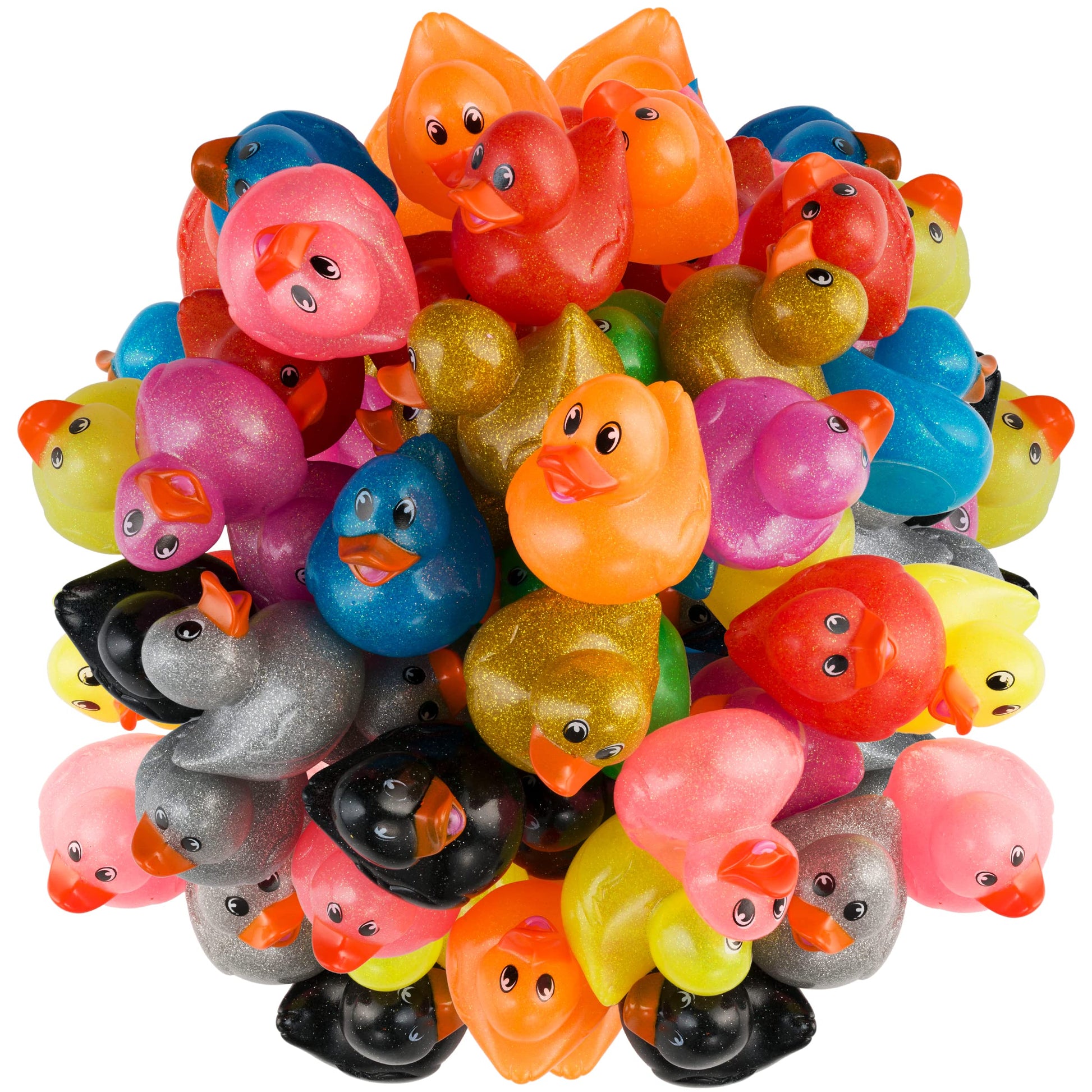 - PACK OF 600 GLITTER RUBBER DUCKS: This assortment of rubber ducks by Bedwina will be sure to add some shimmer and sparkle to your life. Each order includes a random variety of 600 adorable rubber ducks in 10 unique glittery colors. Rubber Duck Colors Include Yellow, Gold, Black, Brown, Blue, Green, Silver, Pink, Purple & Red