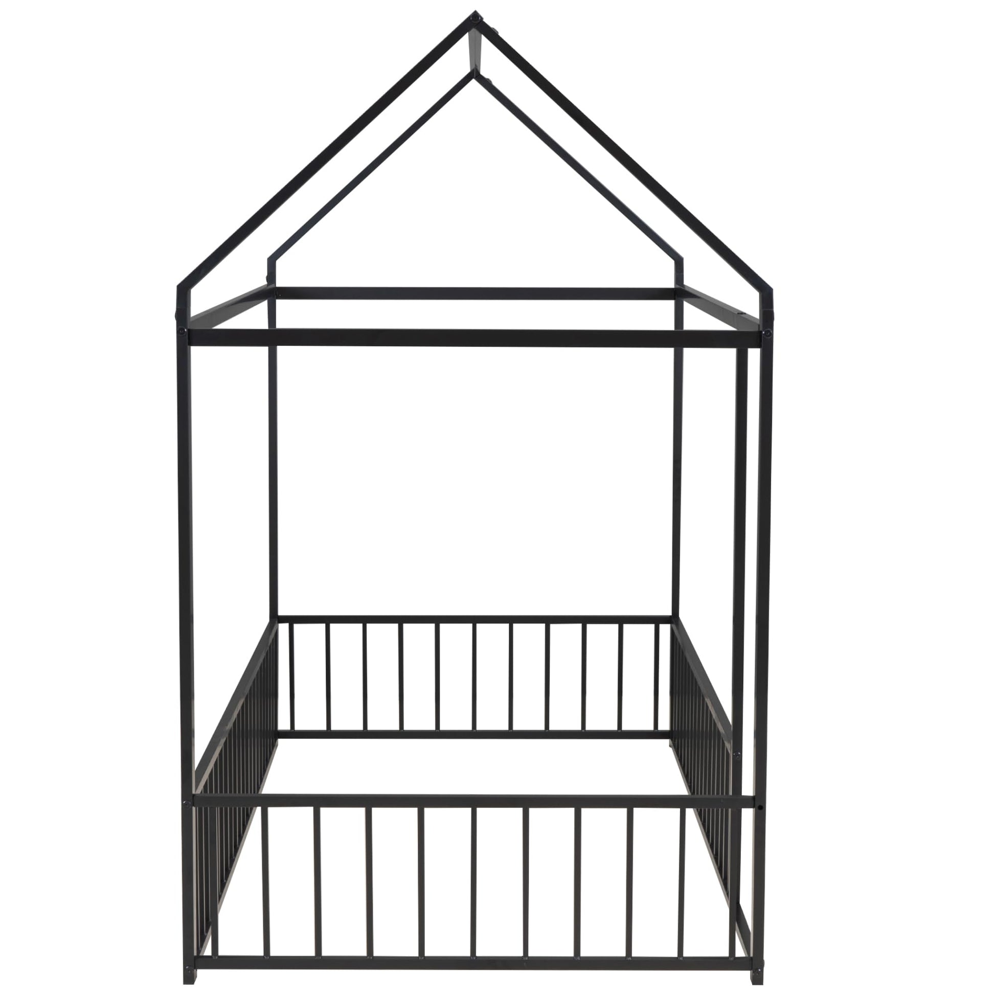 Twin Floor Bed Frame, Metal Montessori Floor Bed Twin with Fence for Boys