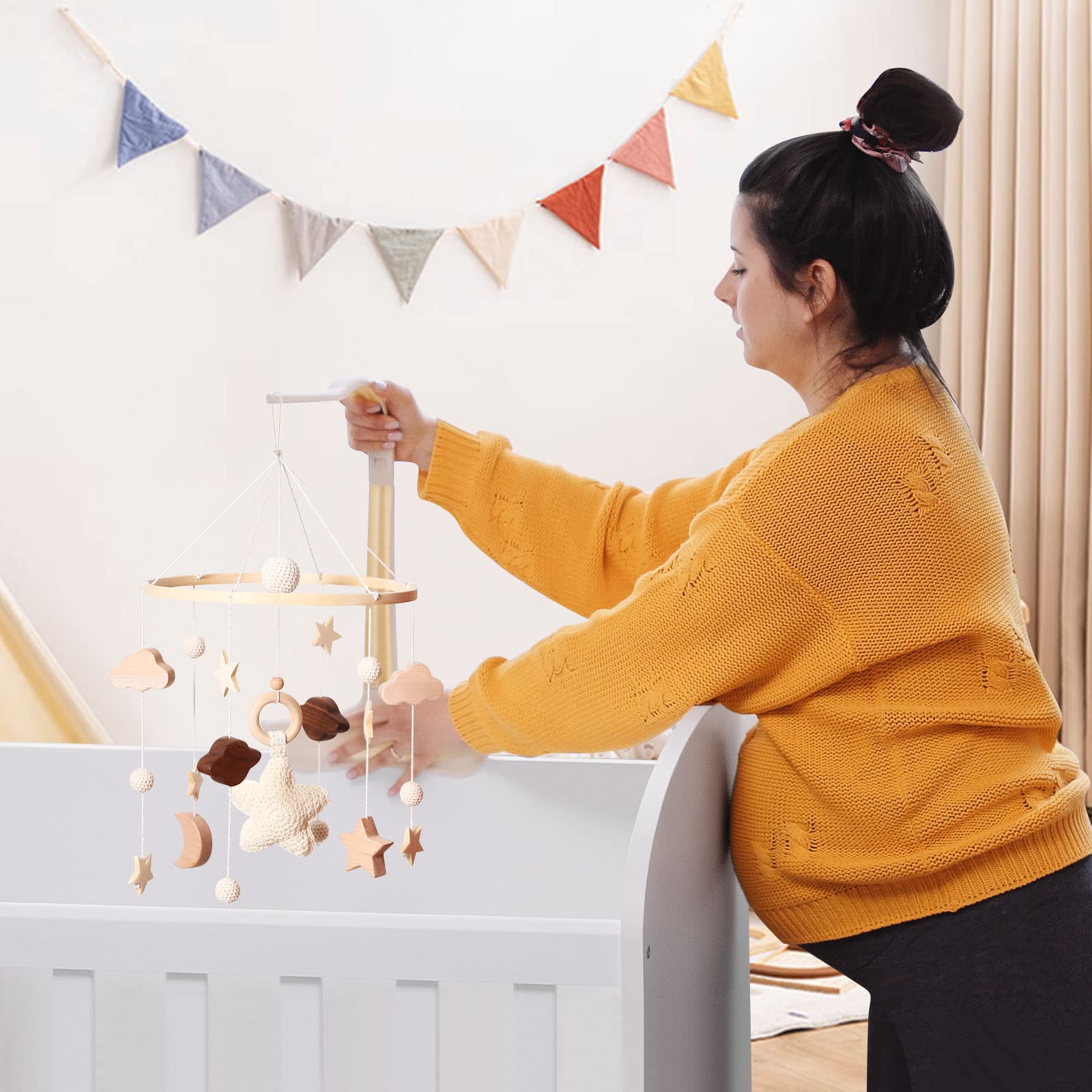 - EXCELLENT HAND CRAFTSMANSHIP:Our baby mobile are not only made of the finest materials, but each part is individually handmade and finely crafted, leaving no detail untouched. To help the healthy growth of the baby, give the baby a unique love.Every mother will feel reassured by this.