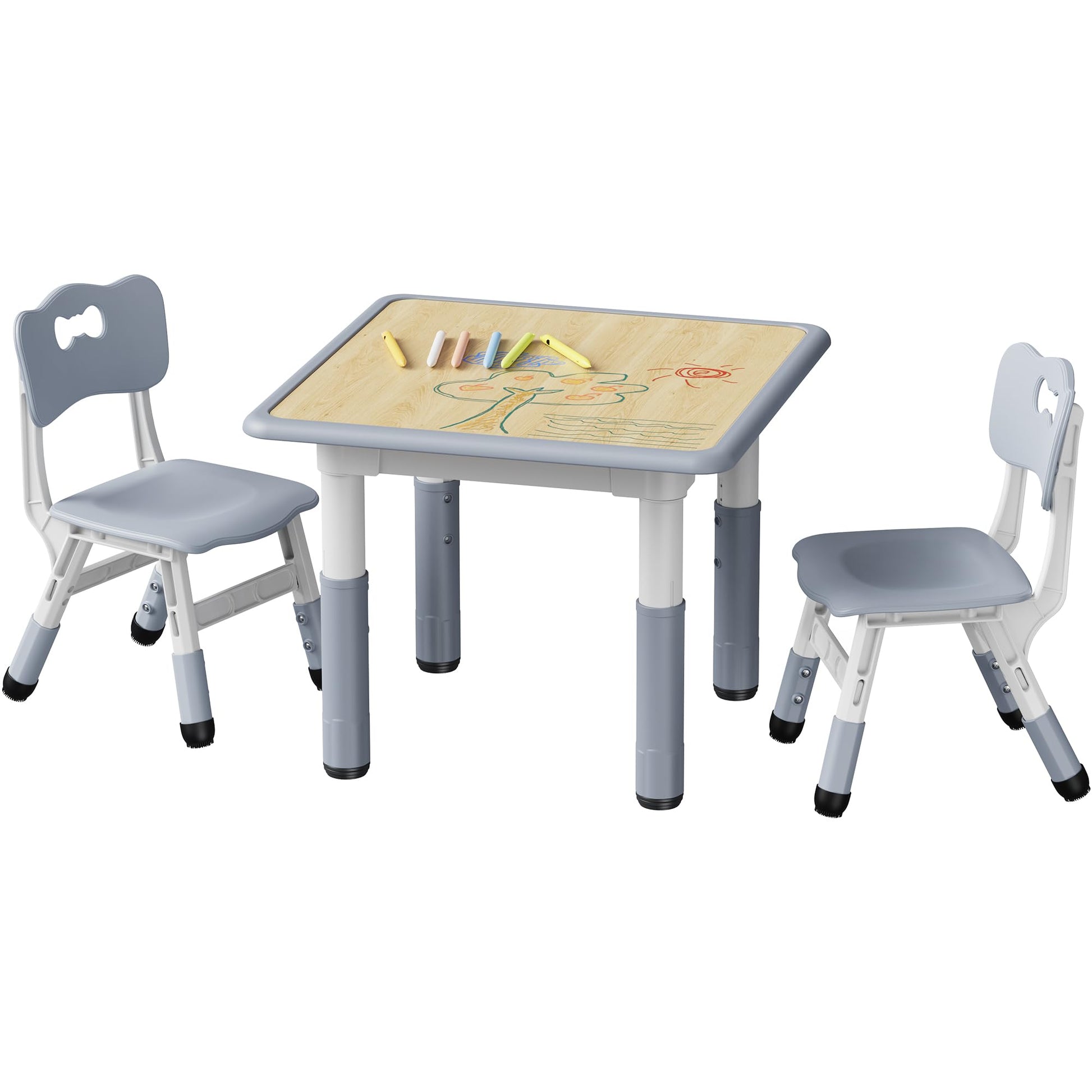 Table and 2 Chairs Set, Height Adjustable Toddler Desk and Chair Set