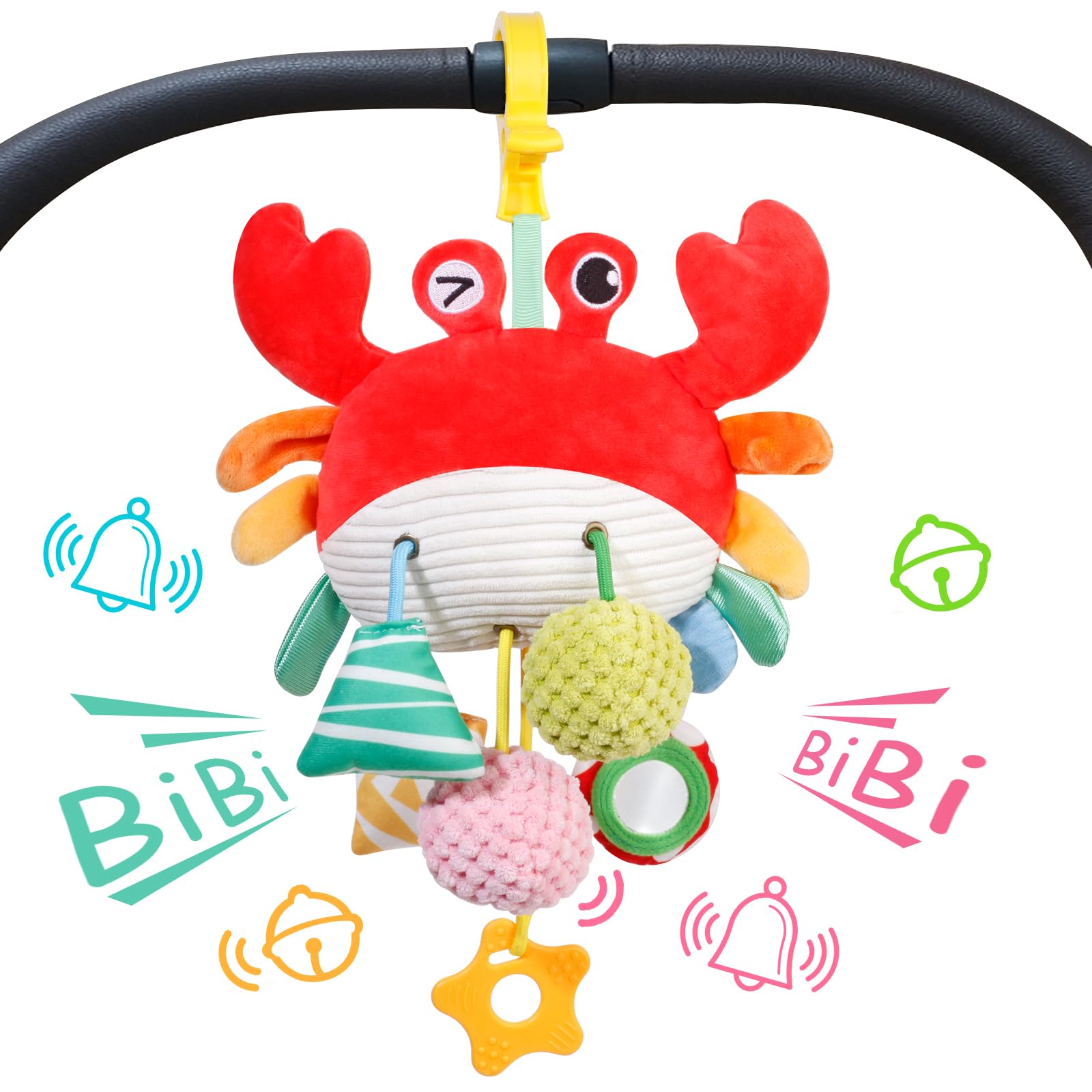 - CAR SEAT TOYS FOR 0-6 MONTHS: Our newborn toy is a cute crab with a sturdy clip that is very convenient to use. You can hang it on strollers, baby beds, baby fences, and car seats to attract your baby's attention and keep them fully entertained. It allows your baby to focus on playing and in the process the baby promotes the development of the baby's brain through vision, touch and hearing.
