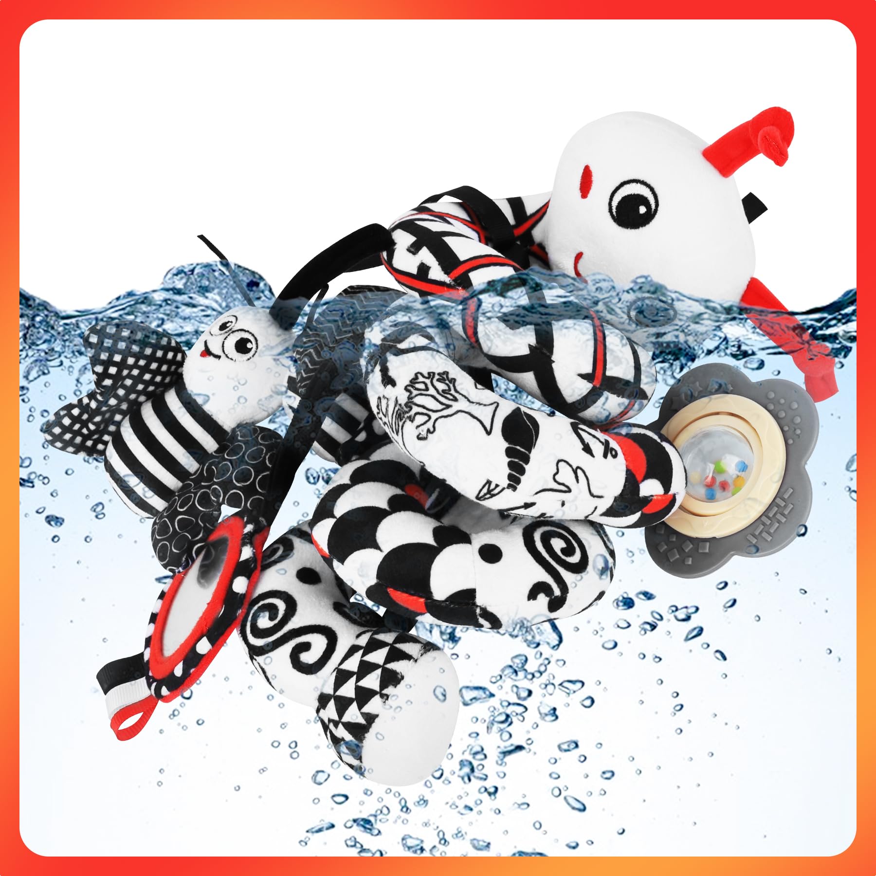 - Our Clever Idea: Research has shown that babies over 3 months old have begun to break through the gray system in terms of visual perception, and we have added red to the original black and white high-contrast colors. The Spiral section, composed of four different patterns pieced together as a whole, promotes the development of spatial thinking ability and creativity in early development education for babies