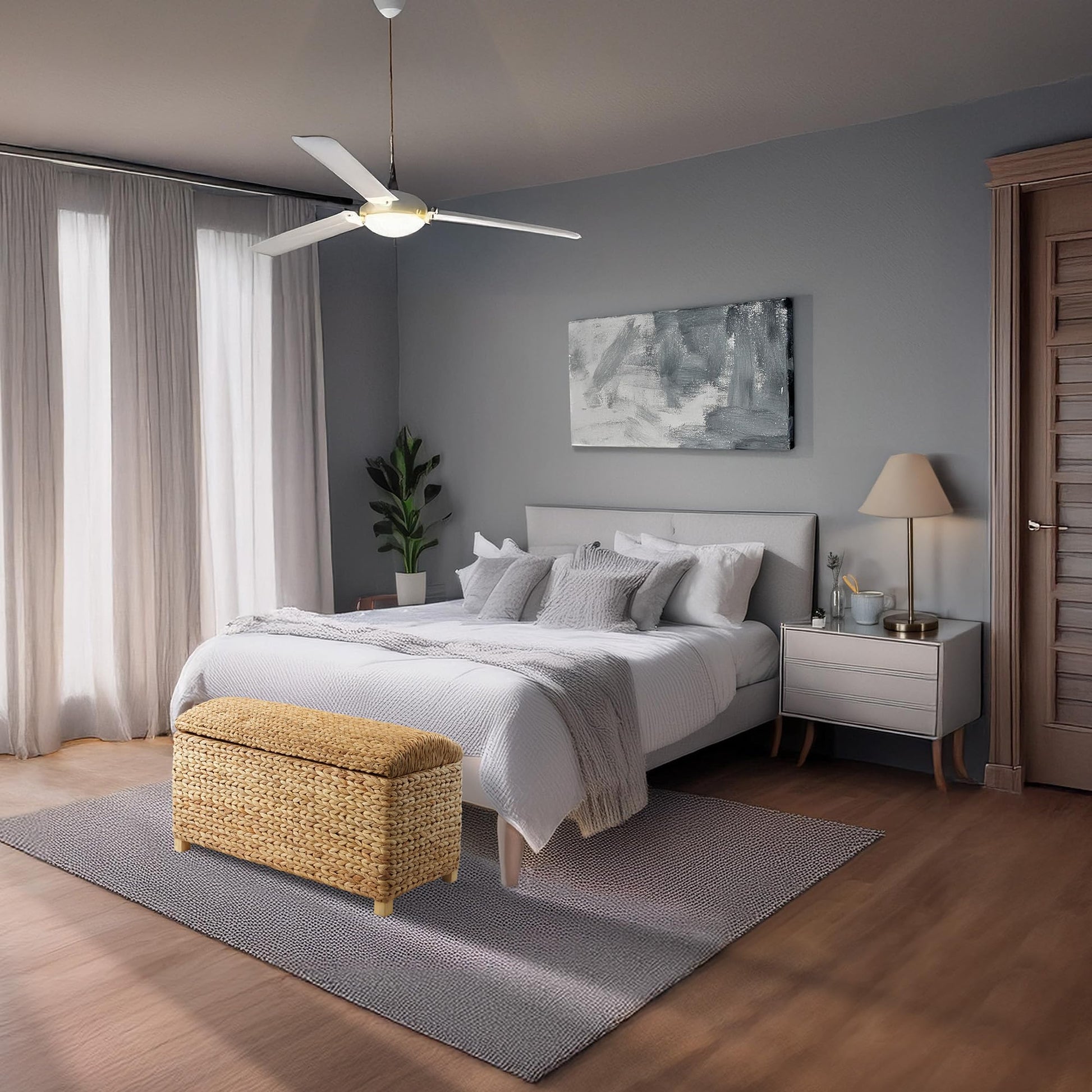 - Elegant design & sturdy build: The trunk features a graceful, curved top and sturdy wooden frame. The water hyacinth weave gives the bench a stylish, natural touch, perfect for farmhouse, modern, and rustic home decor alike.