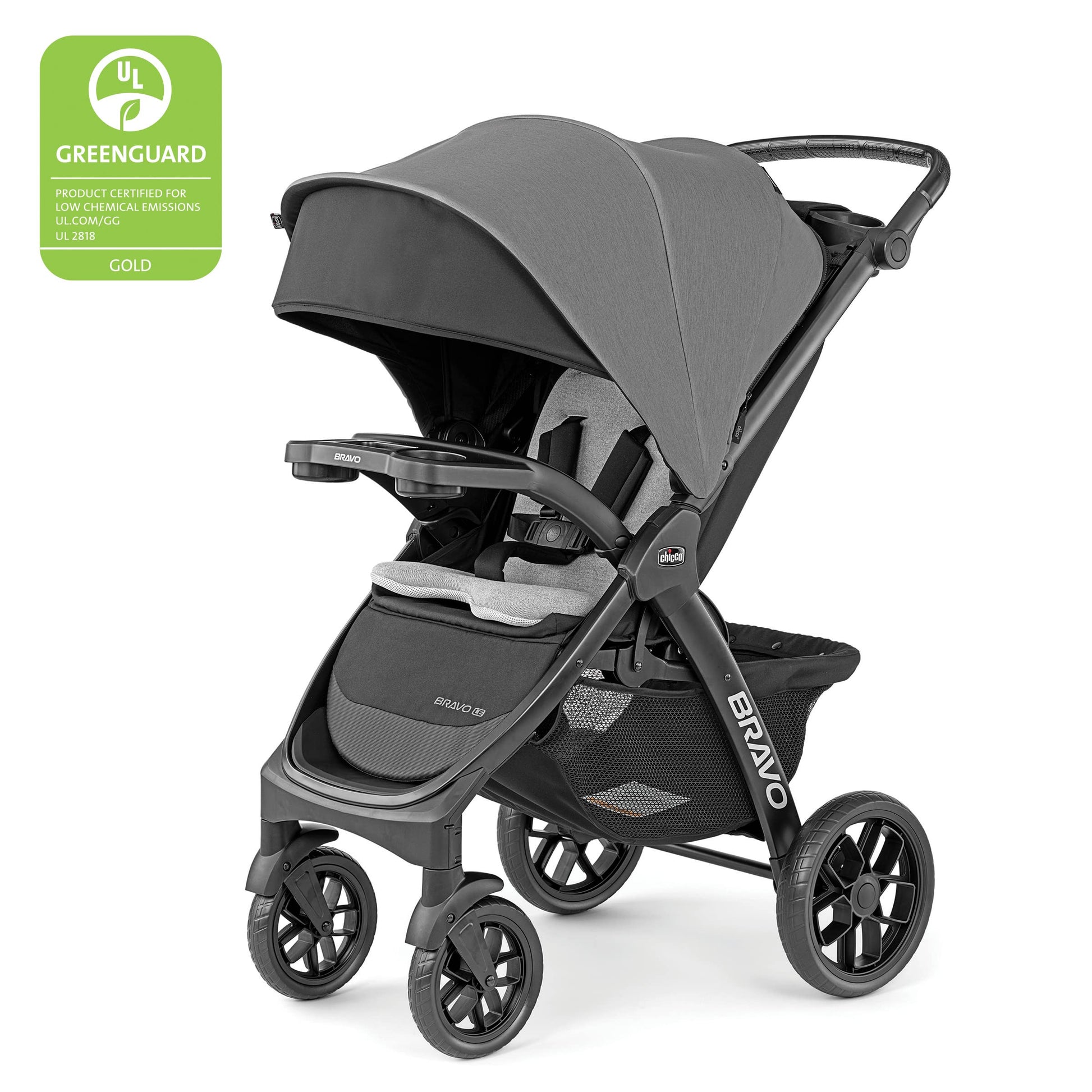 - Removable seat and canopy transform Bravo LE ClearTex to a lightweight car seat carrier for streamlined travel from day one. Offers secure, click-in attachment for all Chicco infant car seats (sold separately) via the child tray – no adapter needed.