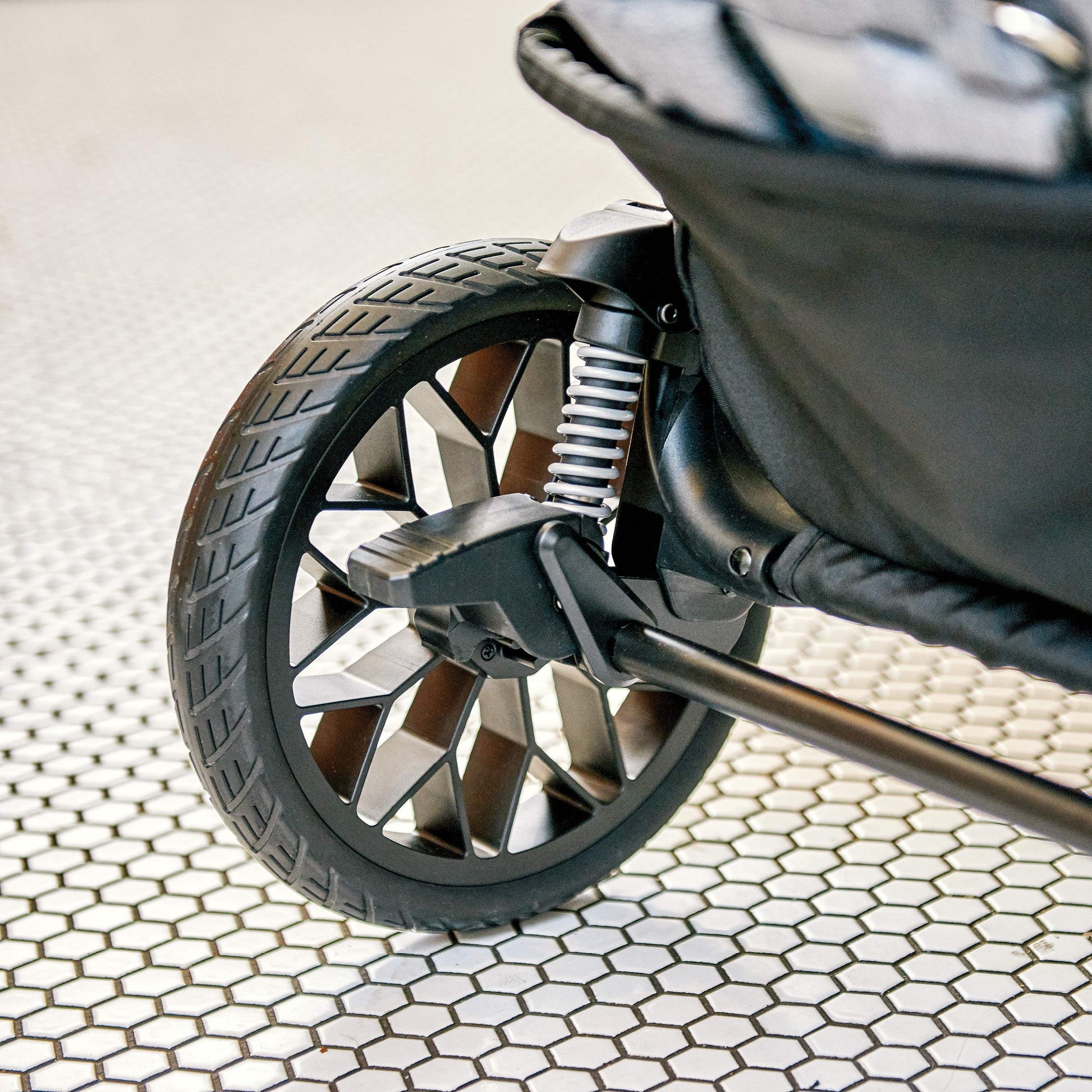 - LUXURY DETAILS – Premium leatherette accents, multi-position reclining seat, large wheels with foam filled rubber tires, a zip-extend canopy, extra-large storage basket and 2 expandable bottle pockets deliver style and convenience.