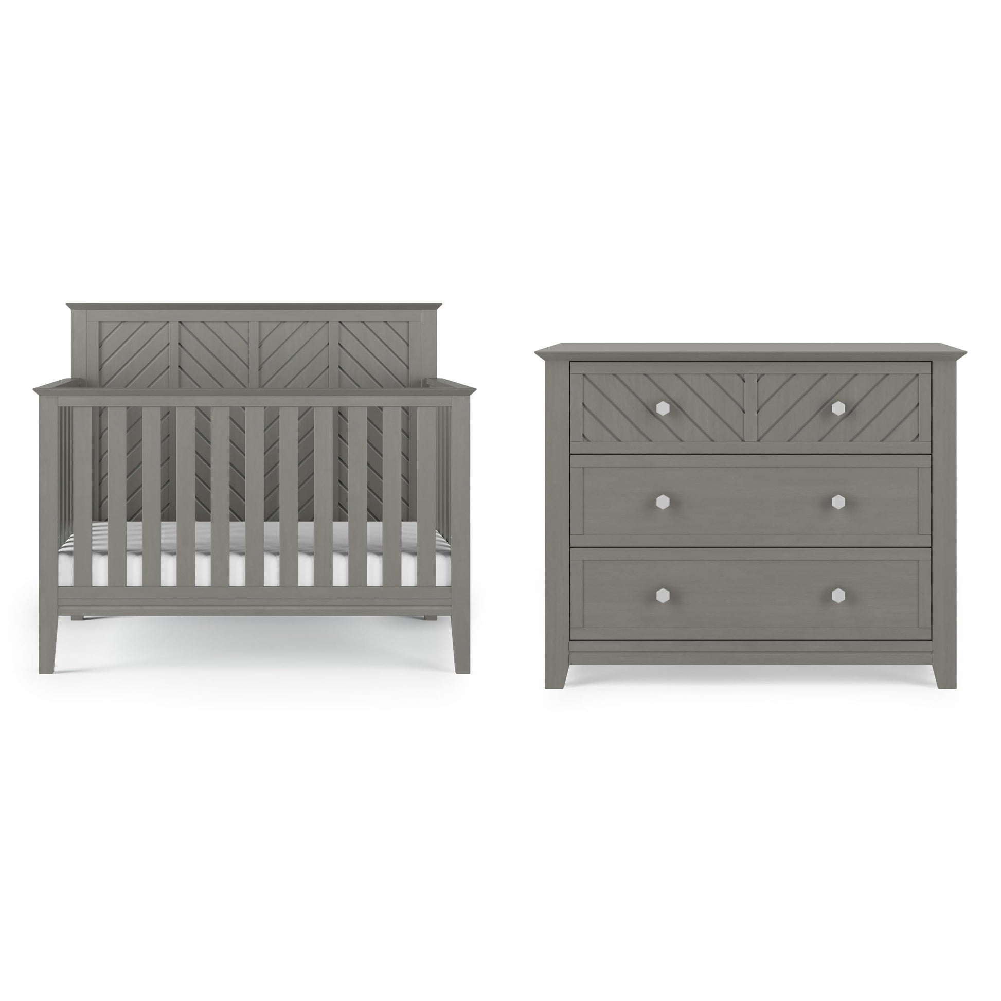 Child Craft Atwood Crib and Dresser Nursery Set, 2-Piece, Includes 4-in-1 Convertible Crib and 3-Drawer Dresser, Grows with Your Baby (Lunar Gray)