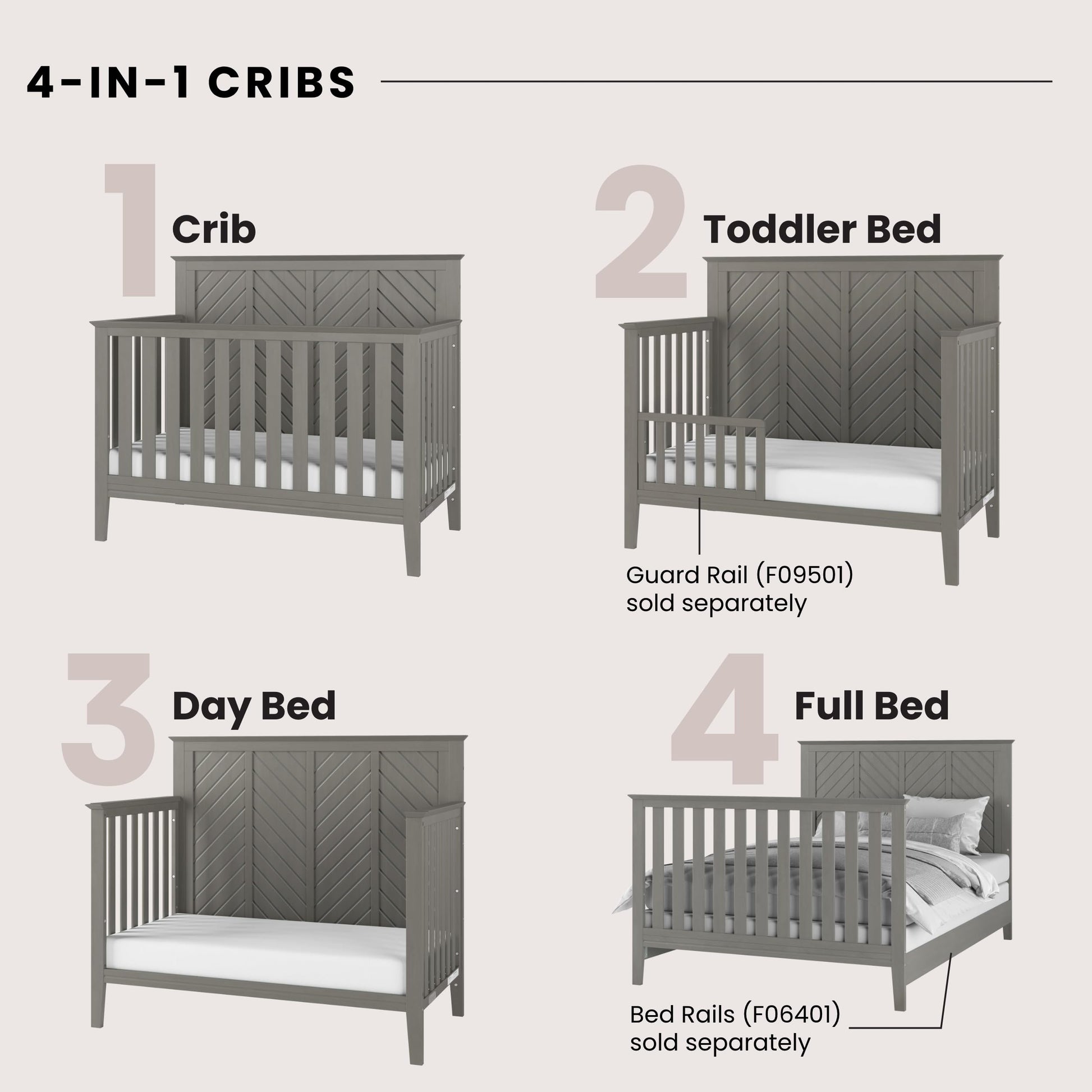 - The Atwood 4-in-1 Convertible Crib is compatible with the Child Craft Dream Catcher Mattress (F04638, sold separately). To convert the Atwood 4-in-1 Convertible Crib into a toddler bed, use the toddler conversion rail (F09501, sold separately). For the full-size bed conversion, you will need the full-size bed rails (F06401, sold separately).
