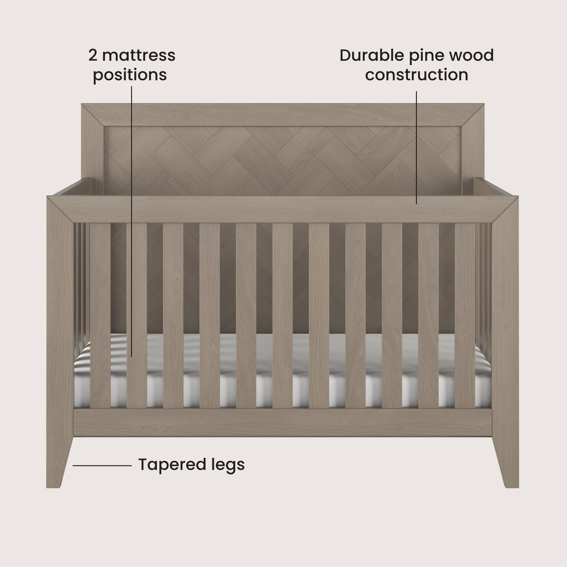 - Assembled Dimensions: 4-in-1 Crib measures 55”L x 29.25” W x 44” H with a weight of 73 lbs. Double dresser measures 39”L x 17.5” W x 50” H with a weight of 135lbs. Chest measures 39”L x 17.5” W x 50” H. Nightstand measures 26"L x 17.5" W x 24" H. Assembly required.