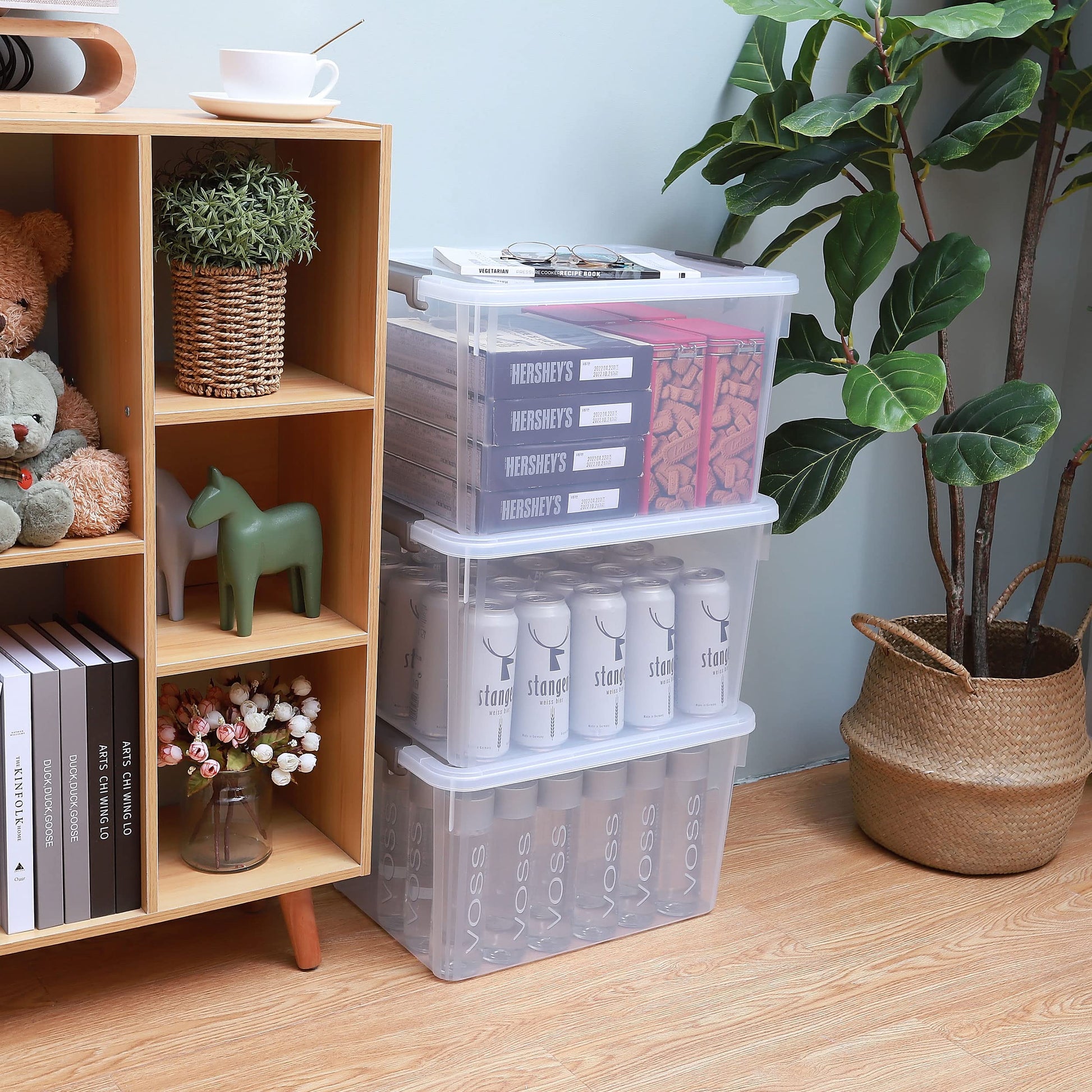 - If you need to organize closets or other areas throughout the home, Citylife plastic storage bins are an ideal solution. Suitable for storing out-of-season clothes, linens, shoes, holiday decorations, crafts, and other bulky items around the home