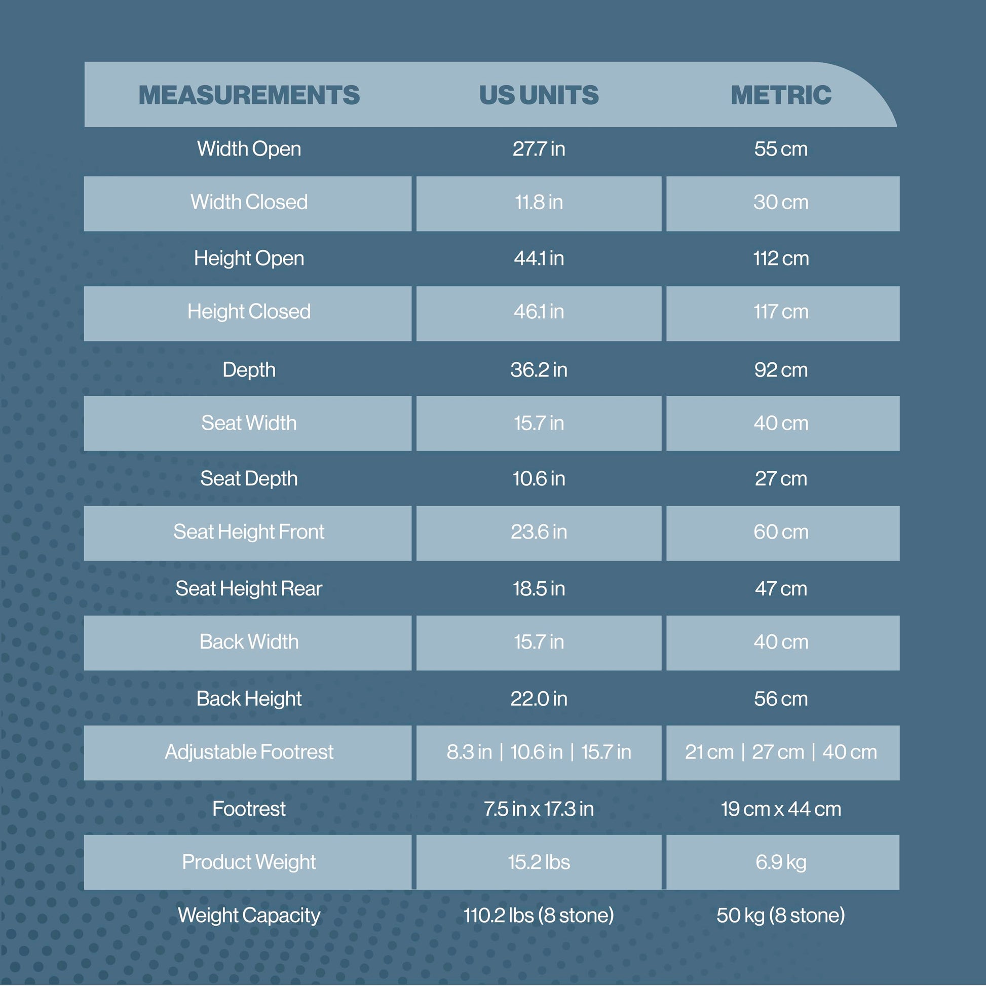 - Sturdy Construction: This large pushchair is ideal for older kids with a robust but lightweight aluminum frame. The Coche XL offers ample seating space with 15 inch wide /10 inch depth seats. This stroller can support up to 110 pounds and accommodates individuals up to 48 inches tall