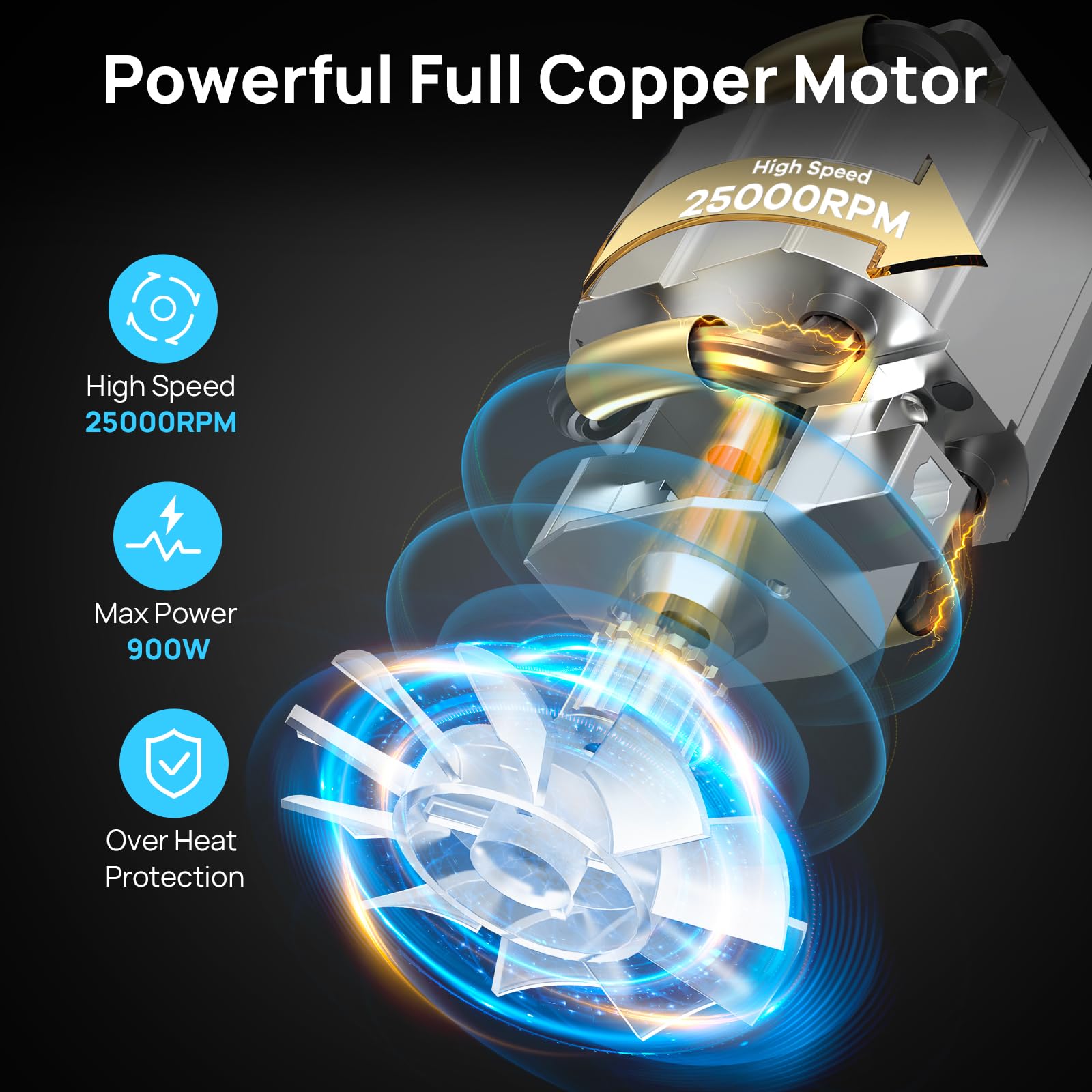 - 【Robust Full Copper Motor】 - A maximum 900W high-horsepower motor with a speed up to 25000 RPM enables faster blade rotation, our blender effortlessly pulverizes ice, finely puree and even liquify ingredients