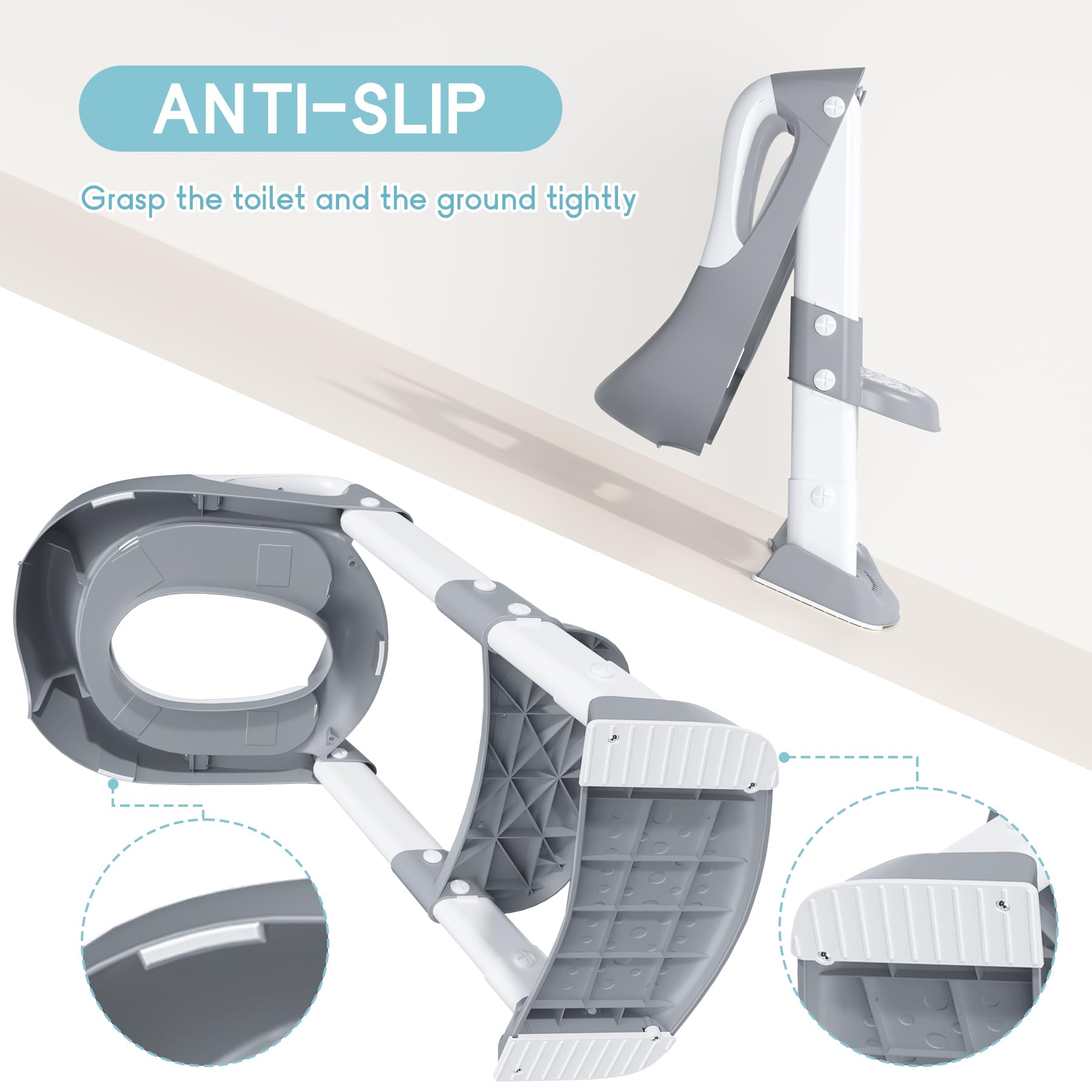 COOSEYA Potty Training Toilet with Step Stool Ladder, Toddler Kids Potty Training Seat for Boys Girls, Foldable Anti-Slip Toilet Toddler Seat Splash Guard Soft Cushion Safety Handles (Grey)