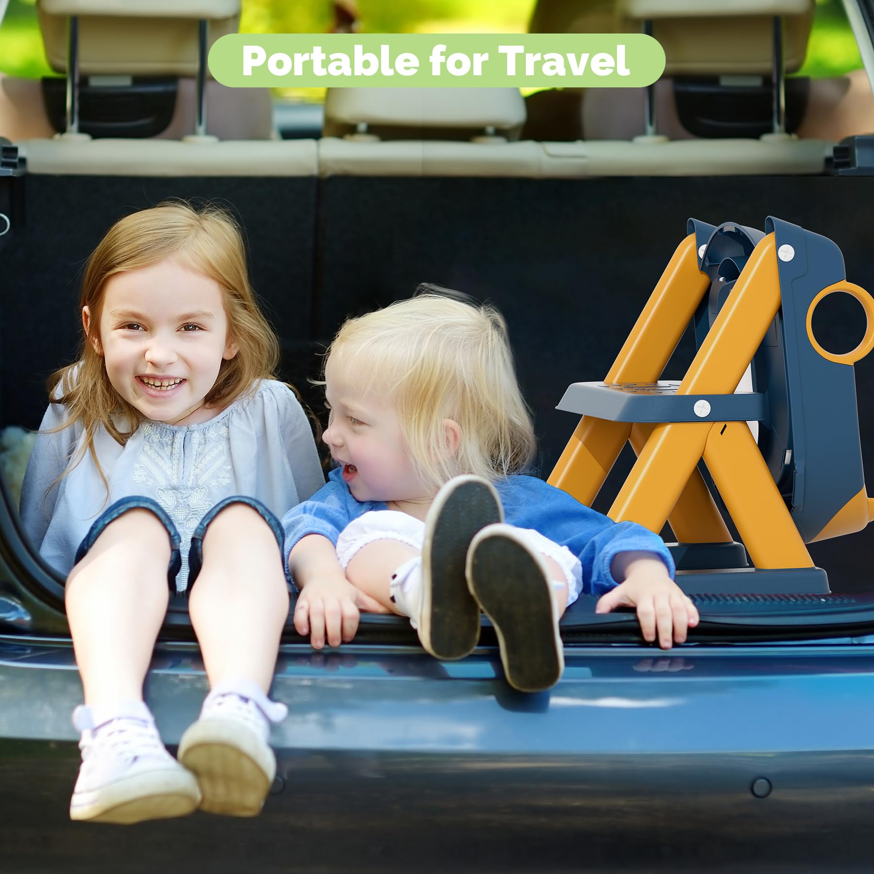 - 2-in-1 Usage : Our multifunctional toilet seat can be used as a step stool for children to reach higher places in addition to being a training toilet ladder. It is convenient for your kids to wash their hands or take things. The product is light and convenient for children to carry by themselves, and the foldable design makes it easy to store.