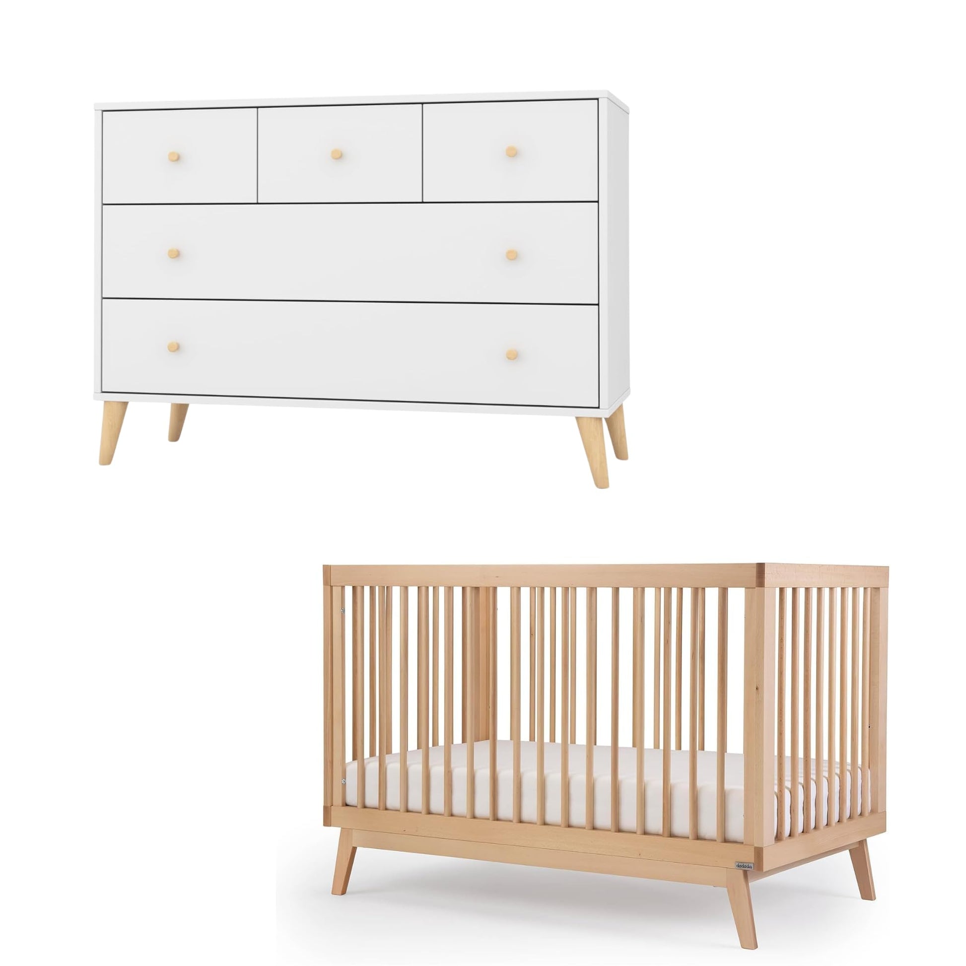 - TIMELESS DESIGN THAT FITS ANY NURSERY: This white/natural crib and dresser set features clean lines and a warm, modern two-tone look that blends easily with any nursery décor.