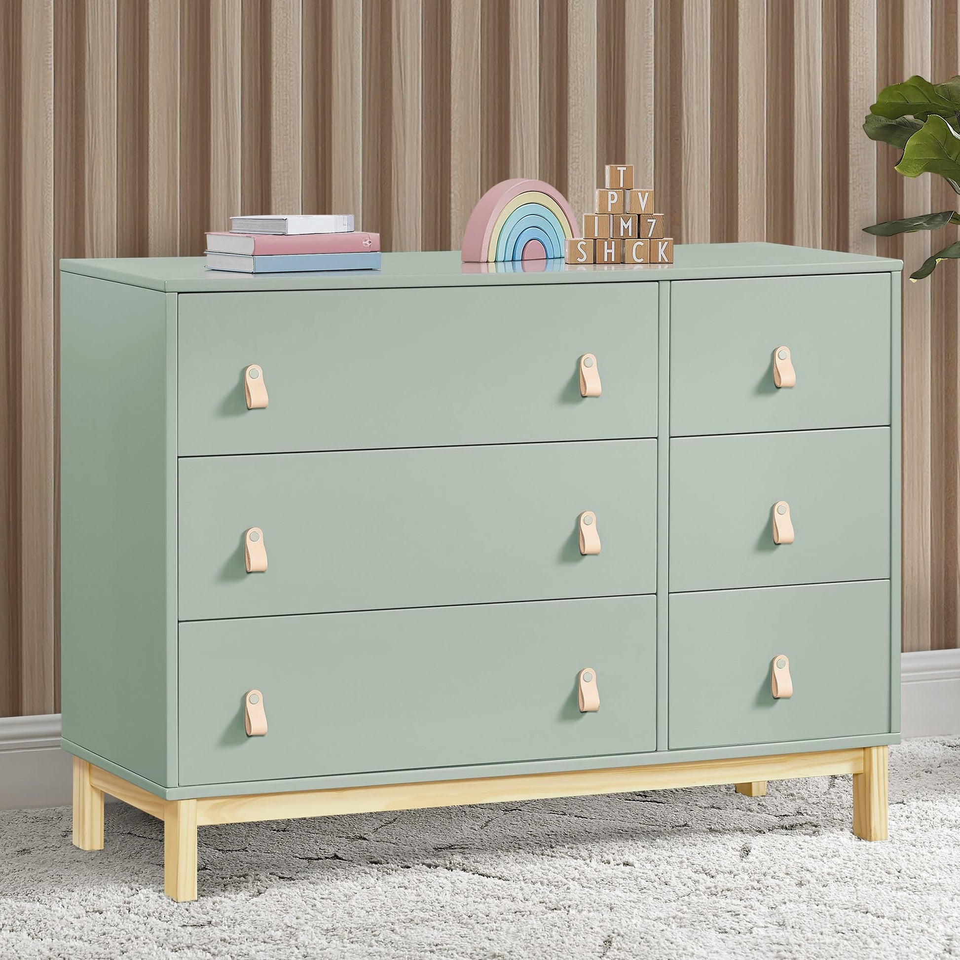 - VERSATILE STORAGE: This dresser features 6 drawers for plenty of storage space | Features leather drawer pulls with decorative metal fastener | Dresser includes tipover restraint for you to securely attach to your wall