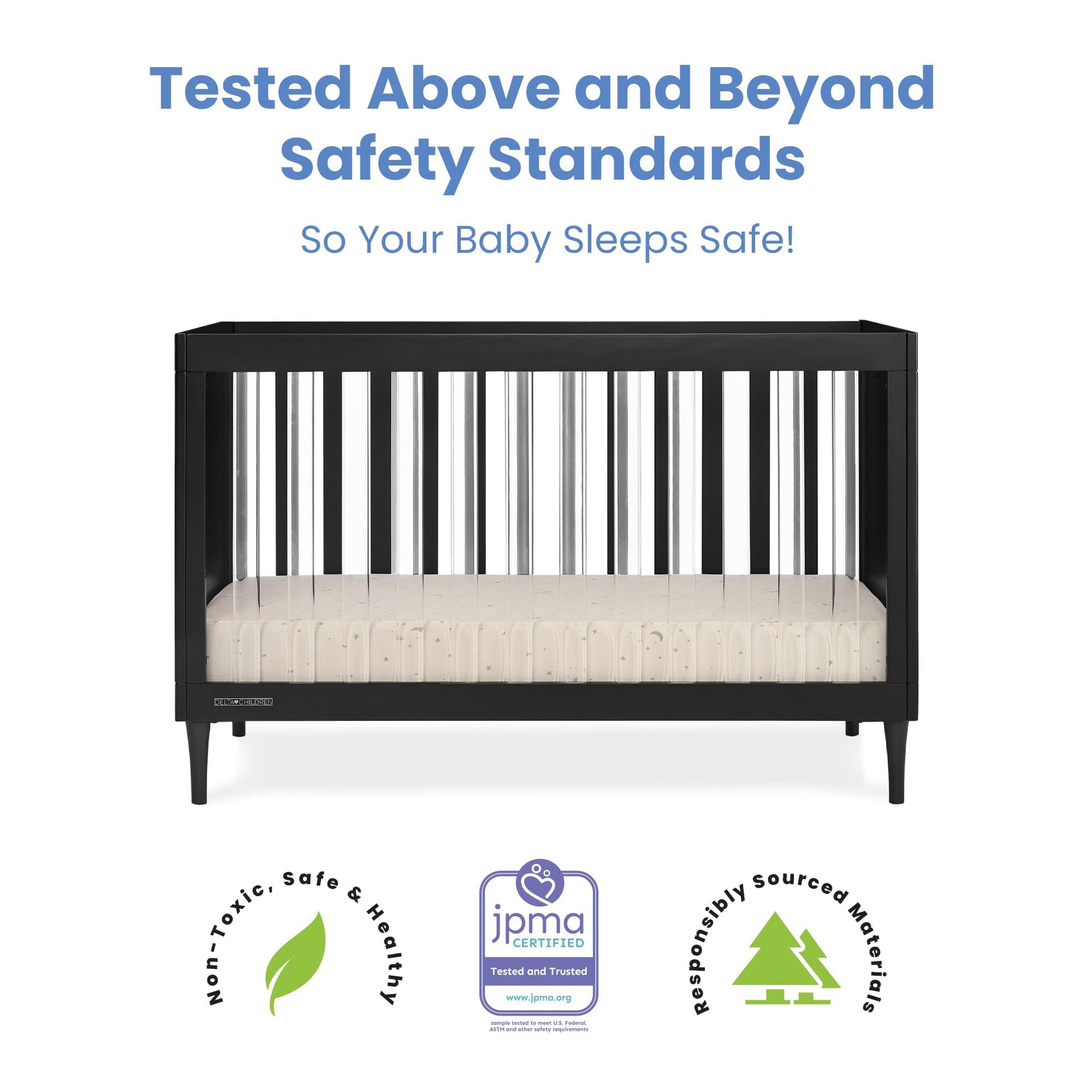 Delta Children was founded around the idea of making safe, high-quality cribs affordable for all families. That's why all Delta Children cribs are JPMA certified, and are tested above and beyond industry standards.