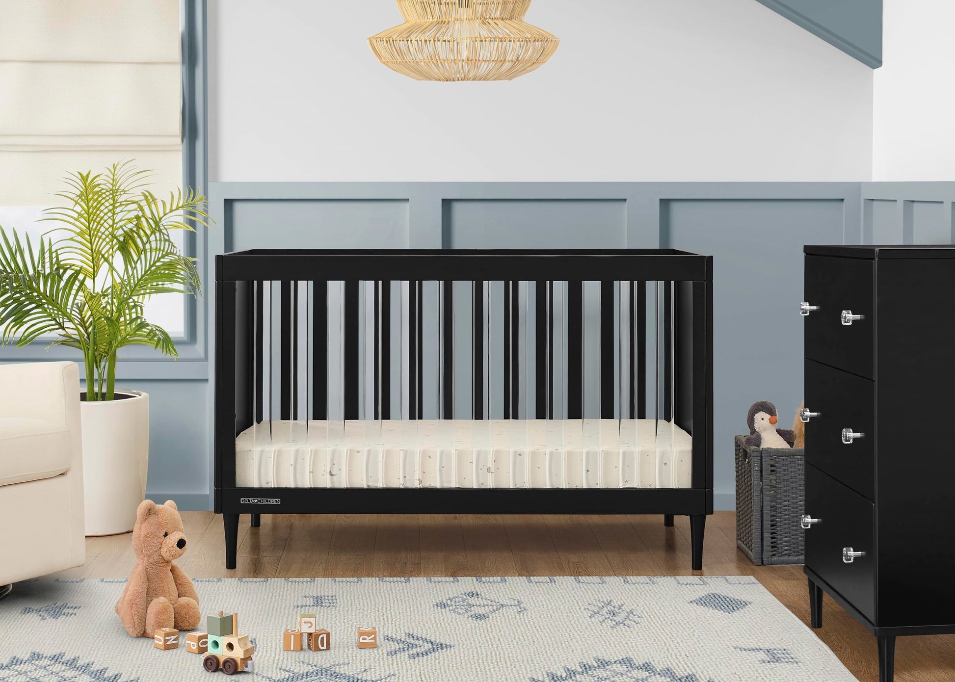 Delta Children Bowie 4-in-1 Convertible Acrylic Crib - Greenguard Gold Certified, Black Ebony