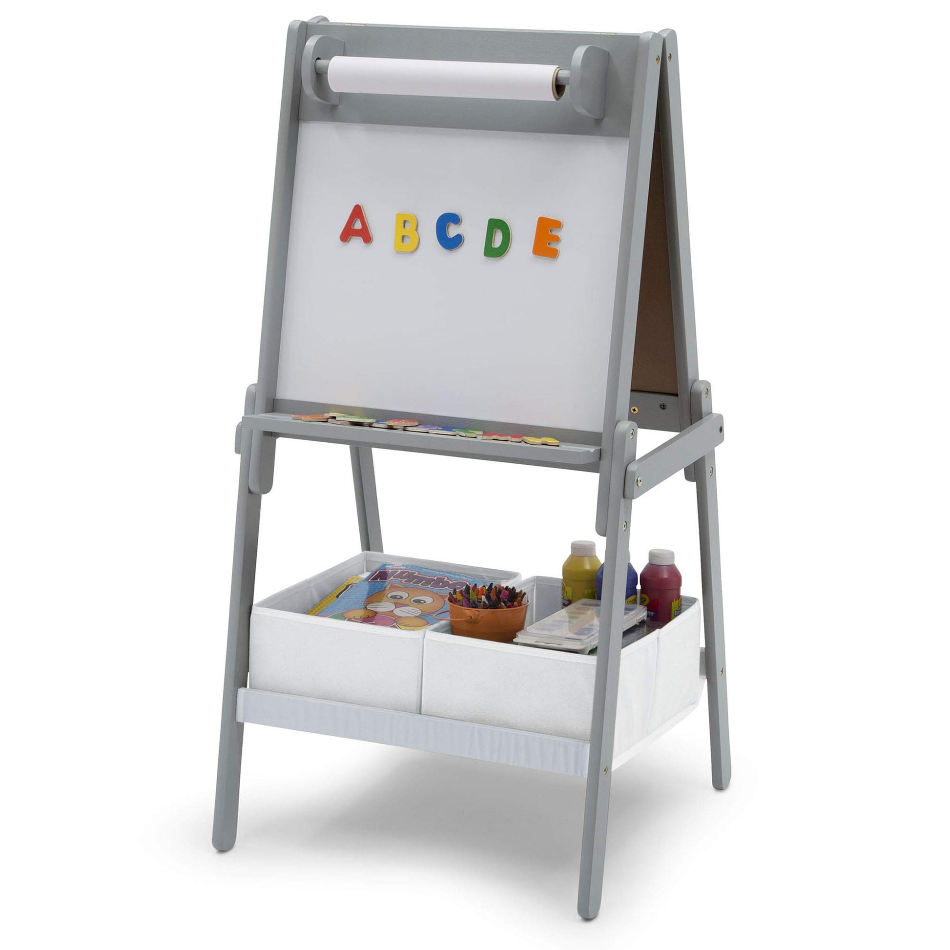 - EASILY STORE SUPPLIES: Two convenient fabric storage bins keep crayons, markers, extra paper, paint or toys within reach