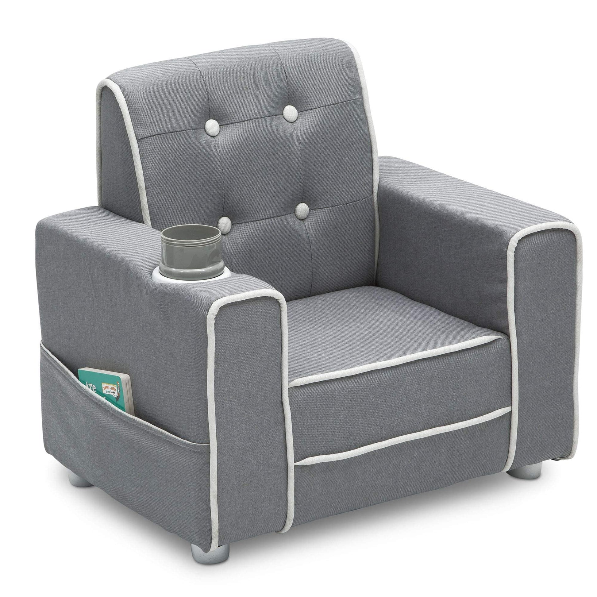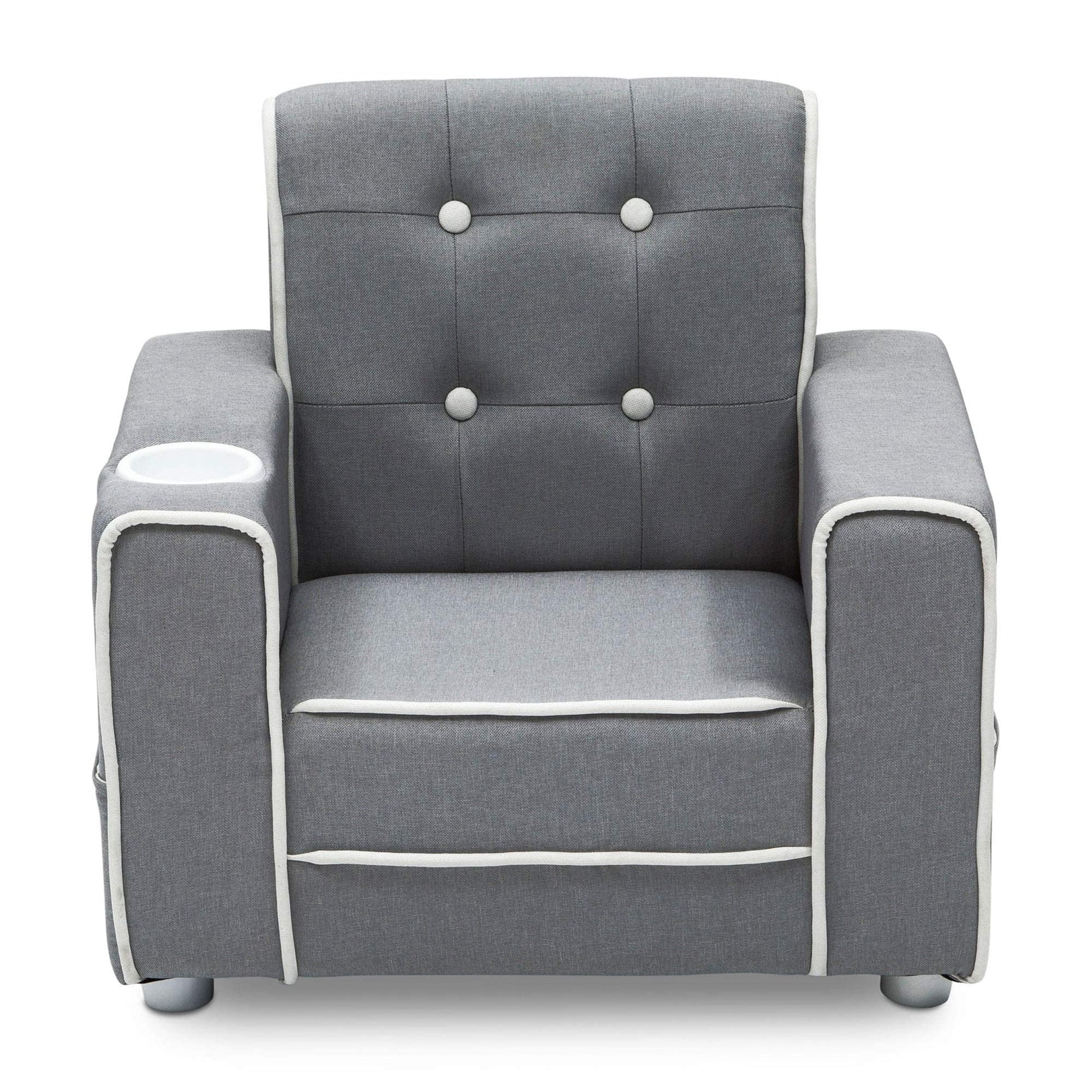 Chelsea Kids Upholstered Chair with Cup Holder, Soft Grey