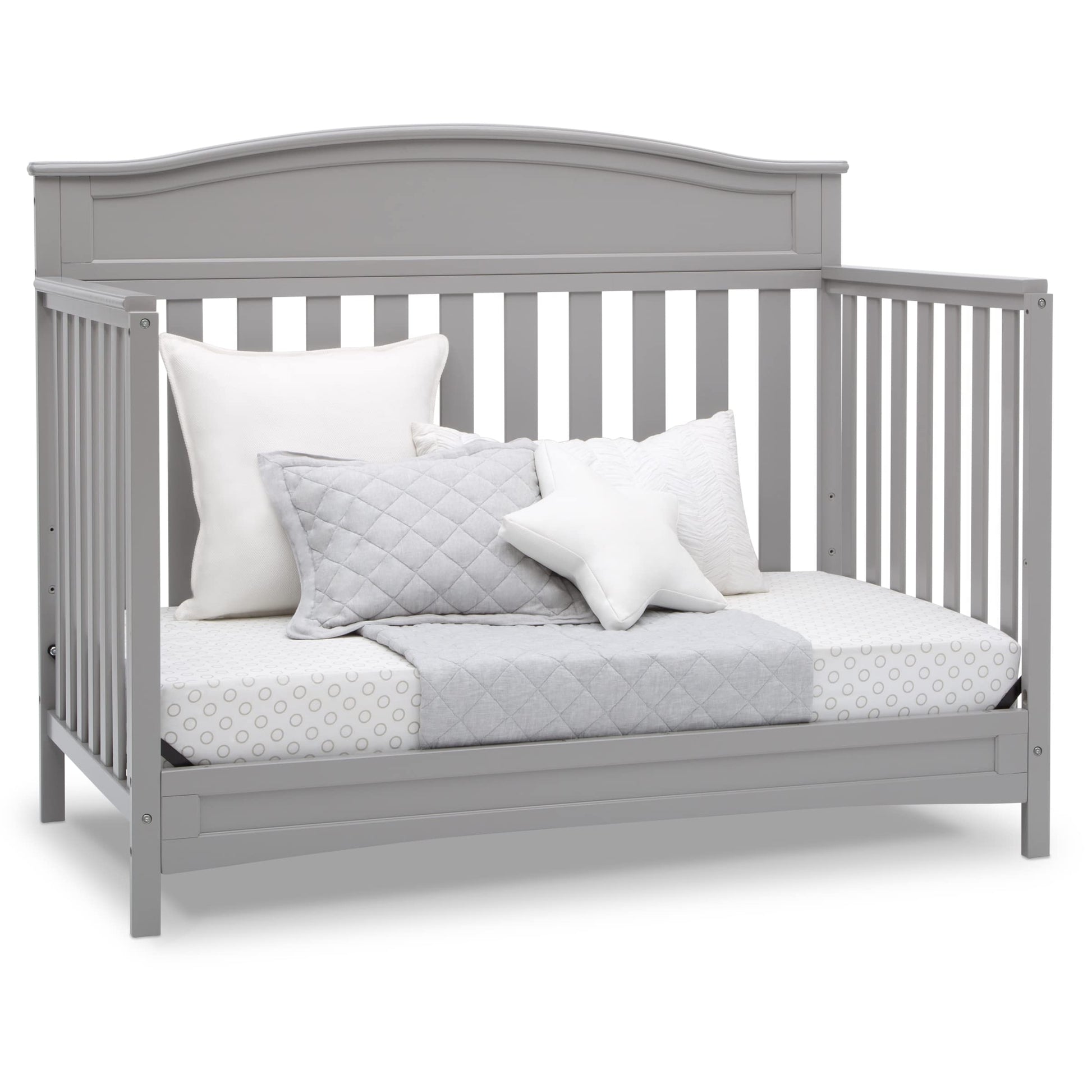 - CONVERTIBLE CRIB: Converts from a crib to a toddler bed, daybed and full size bed with headboard (Daybed Rail included; Toddler Guardrail #0080 and Full Size Metal Bed Frame #0040 sold separately)