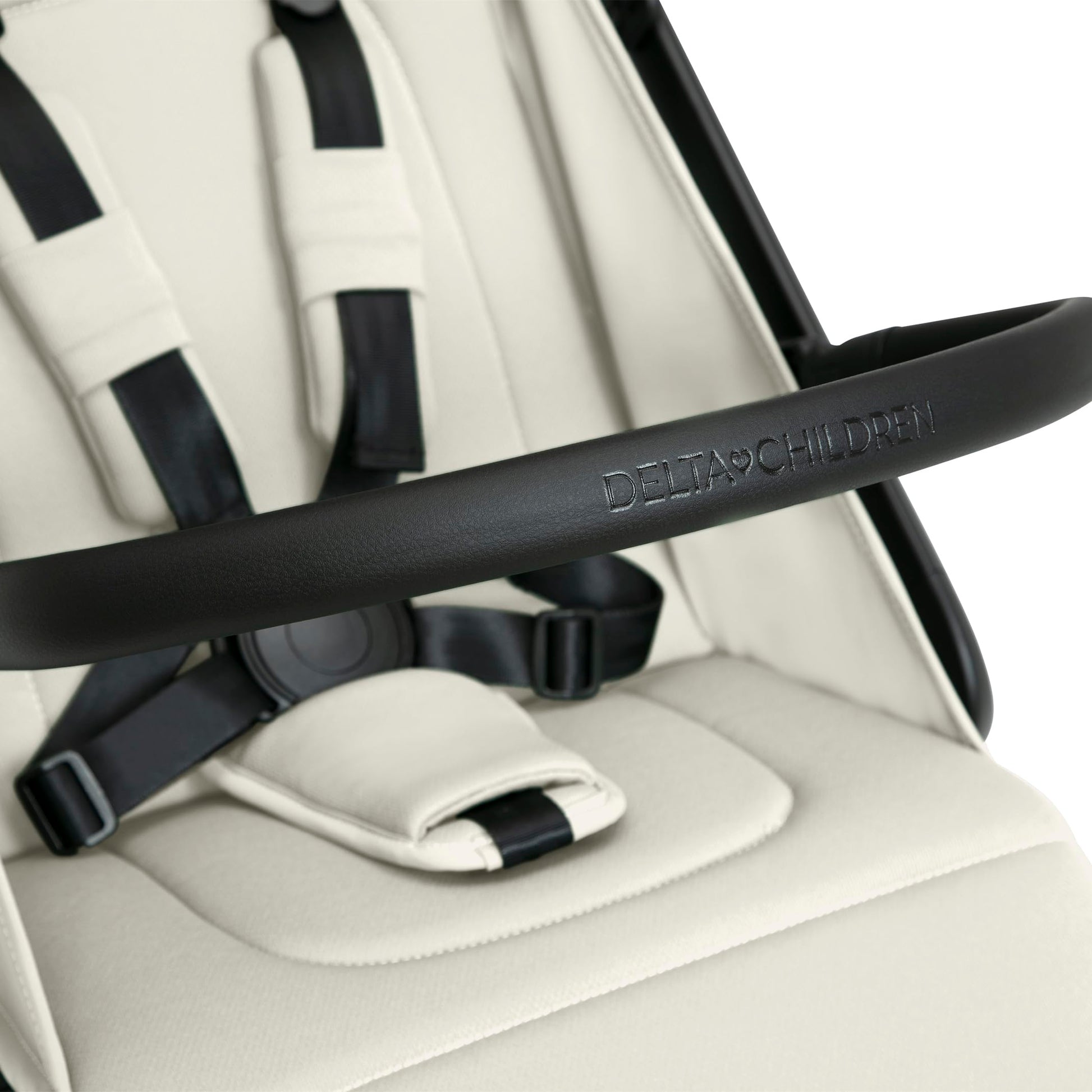 - LUXURIOUS COMFORT: Extendable canopy with breezy mesh peek-a-boo window gives you a clear view of your child | Multi-position recline and footrest | Leatherette parent and child bar | Parent cupholder | Spacious storage basket provides plenty of storage