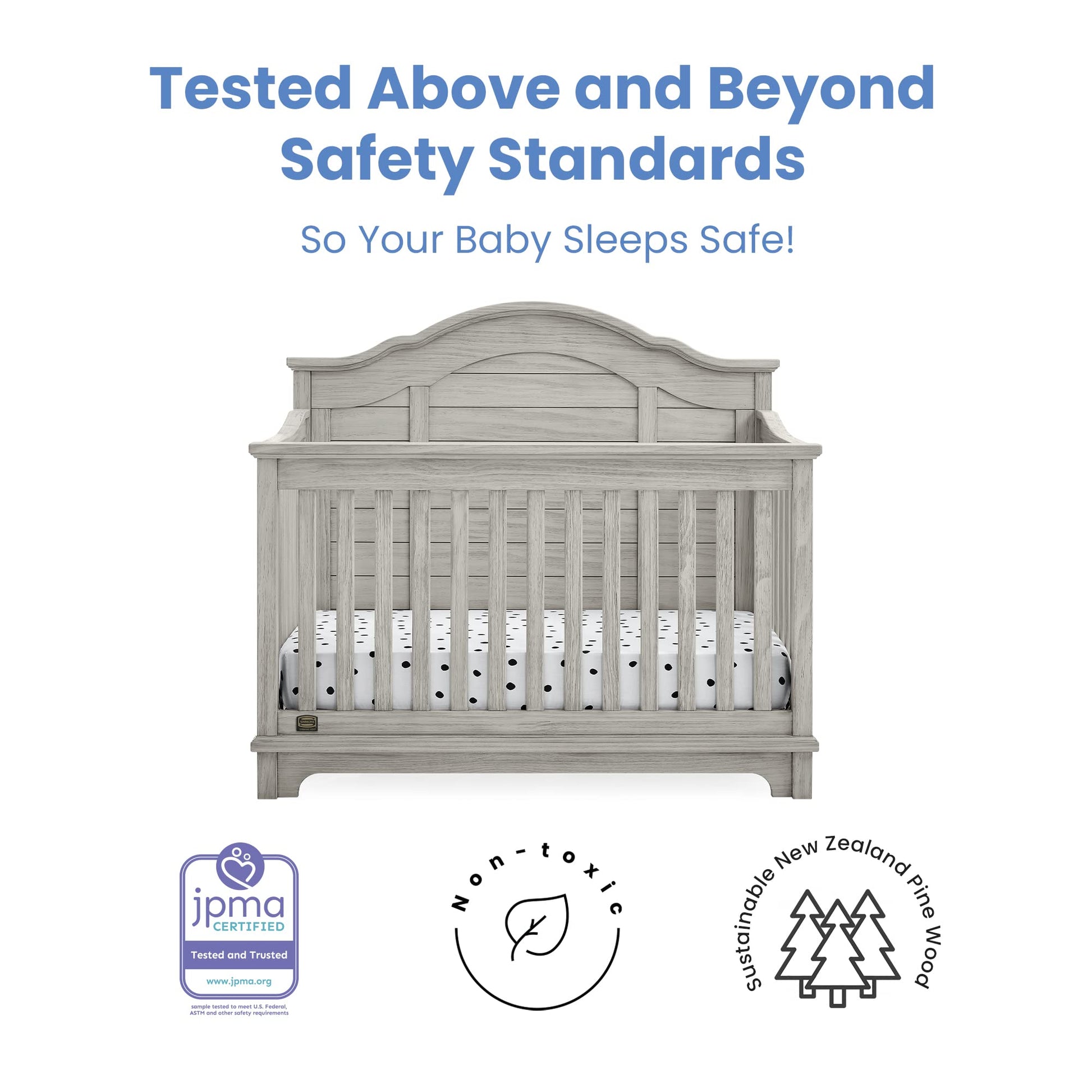 - THE SAFE OPTION FOR YOUR BABY: This crib is JPMA certified to meet or exceed all safety standards set by the CPSC & ASTM | We know chemicals have no place in your nursery, so we use a non-toxic multi-step painting process that is lead and phthalate safe