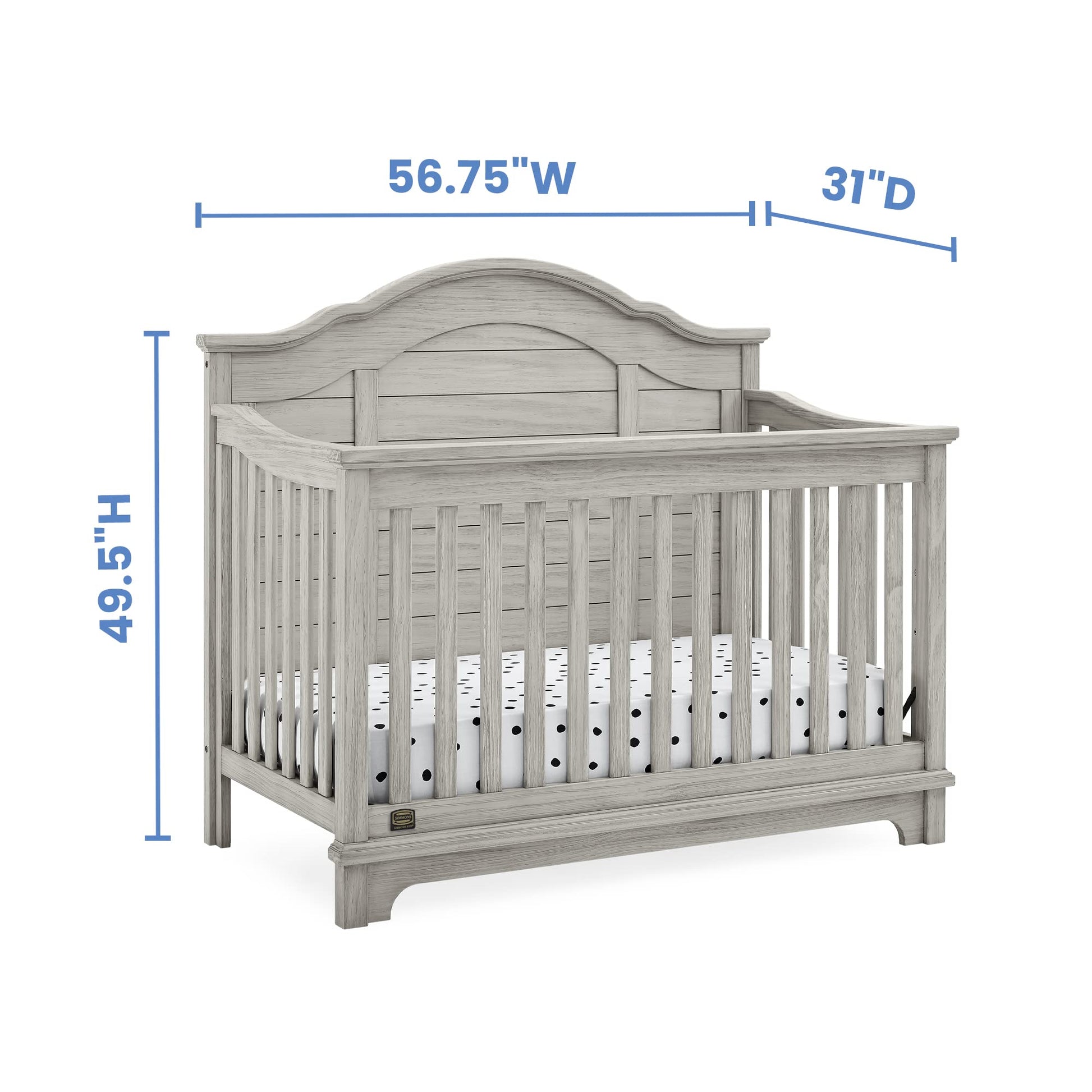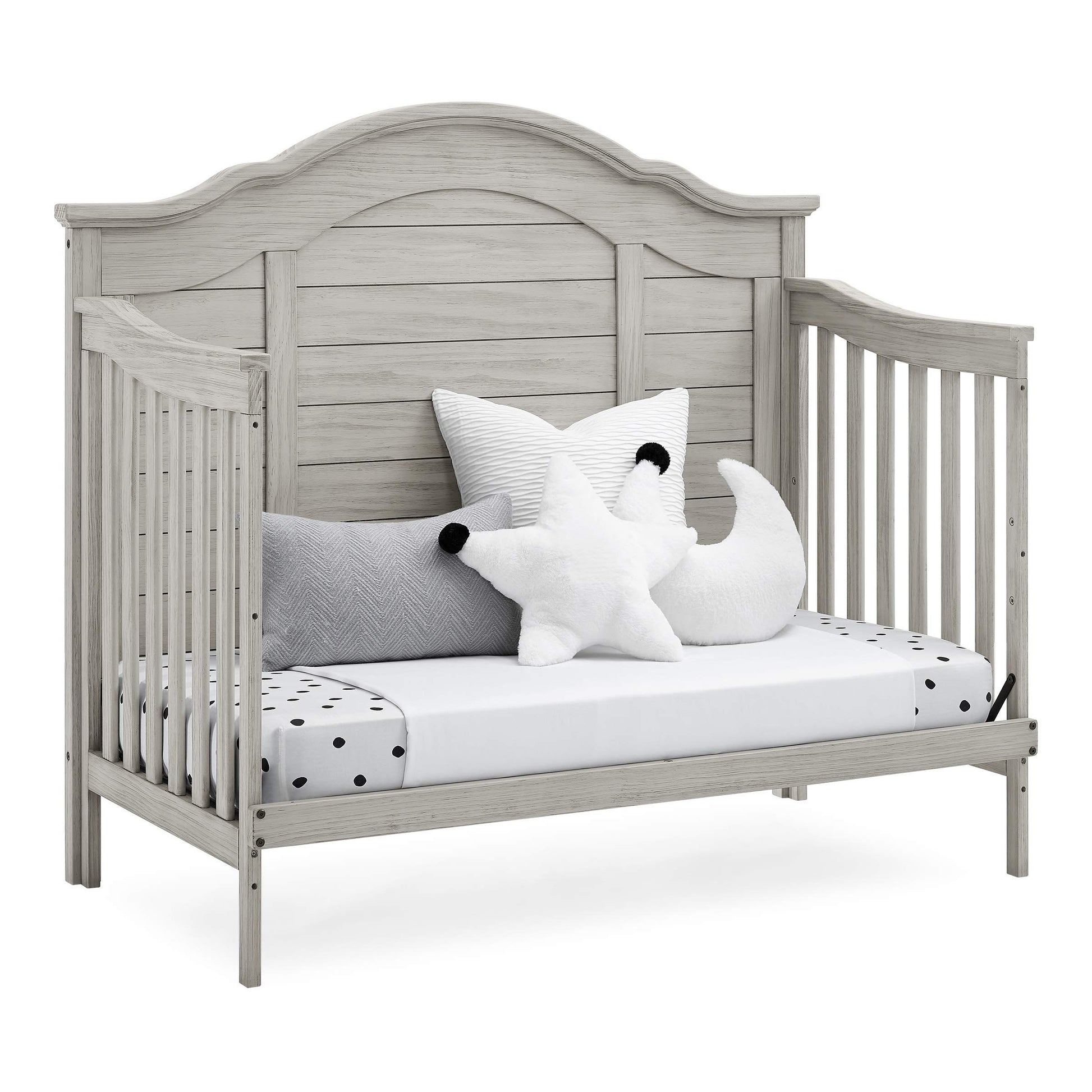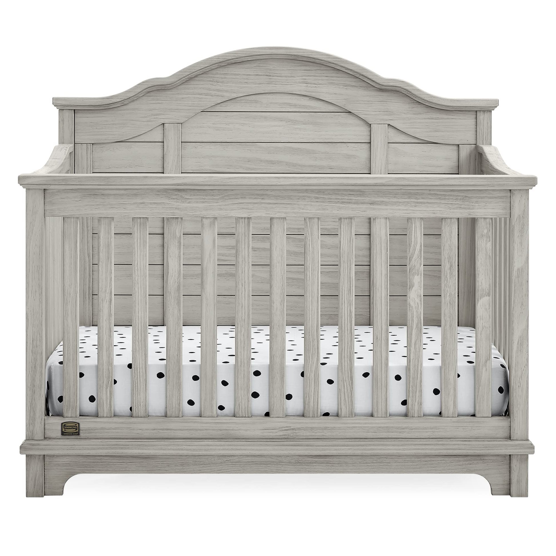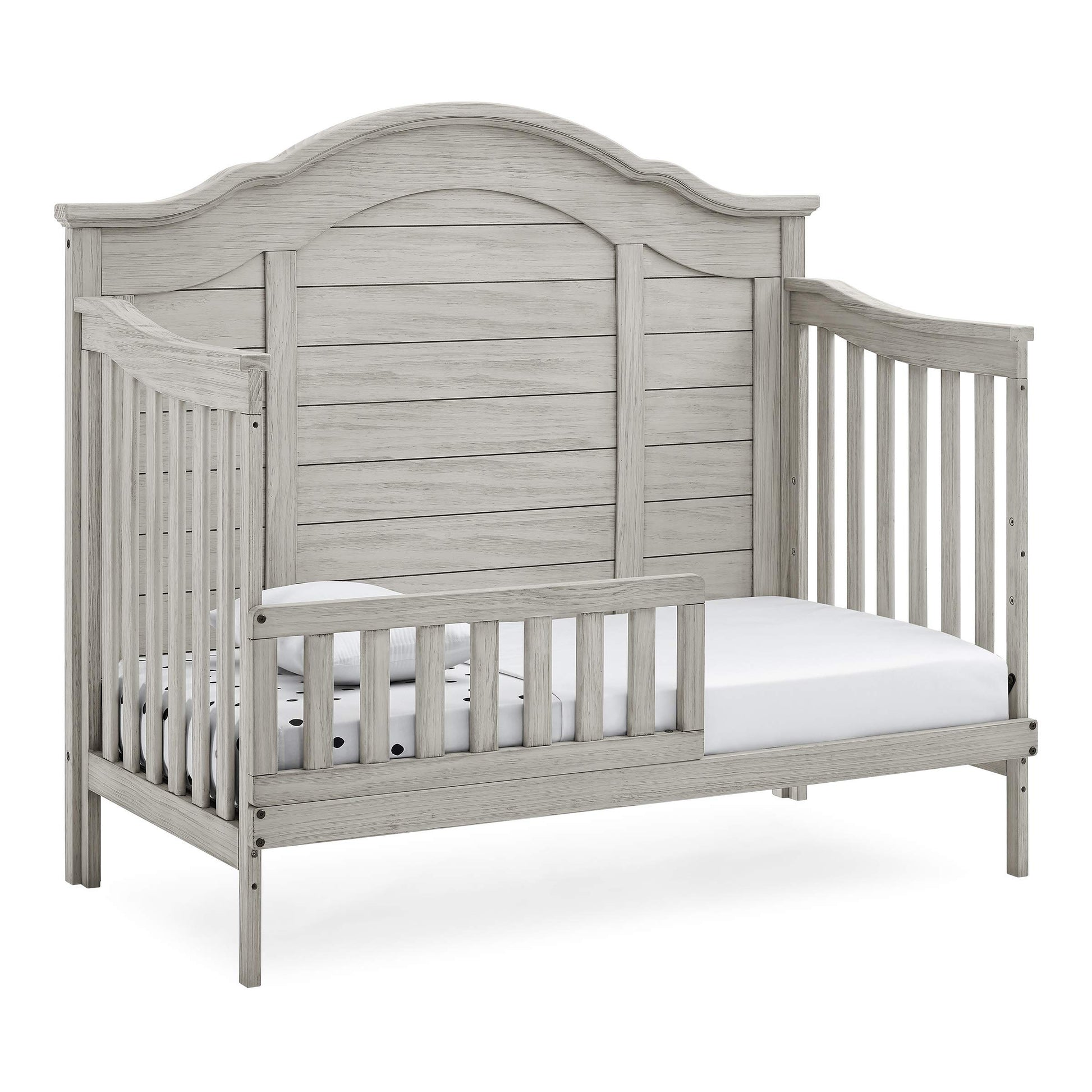 - 6-IN-1 CONVERTIBLE CRIB: Crib converts to toddler bed, daybed, sofa, a full size bed with headboard and footboard and full size bed with headboard only | Daybed/Sofa/Toddler Guardrail Kit Included (Full Size Wood Bed Rails #330750 or Full Size Metal Bed Frame #0040 Sold Separately) | Available in Rustic Mist or Rustic Grey | Crib features a softy textured finish that’s hand applied