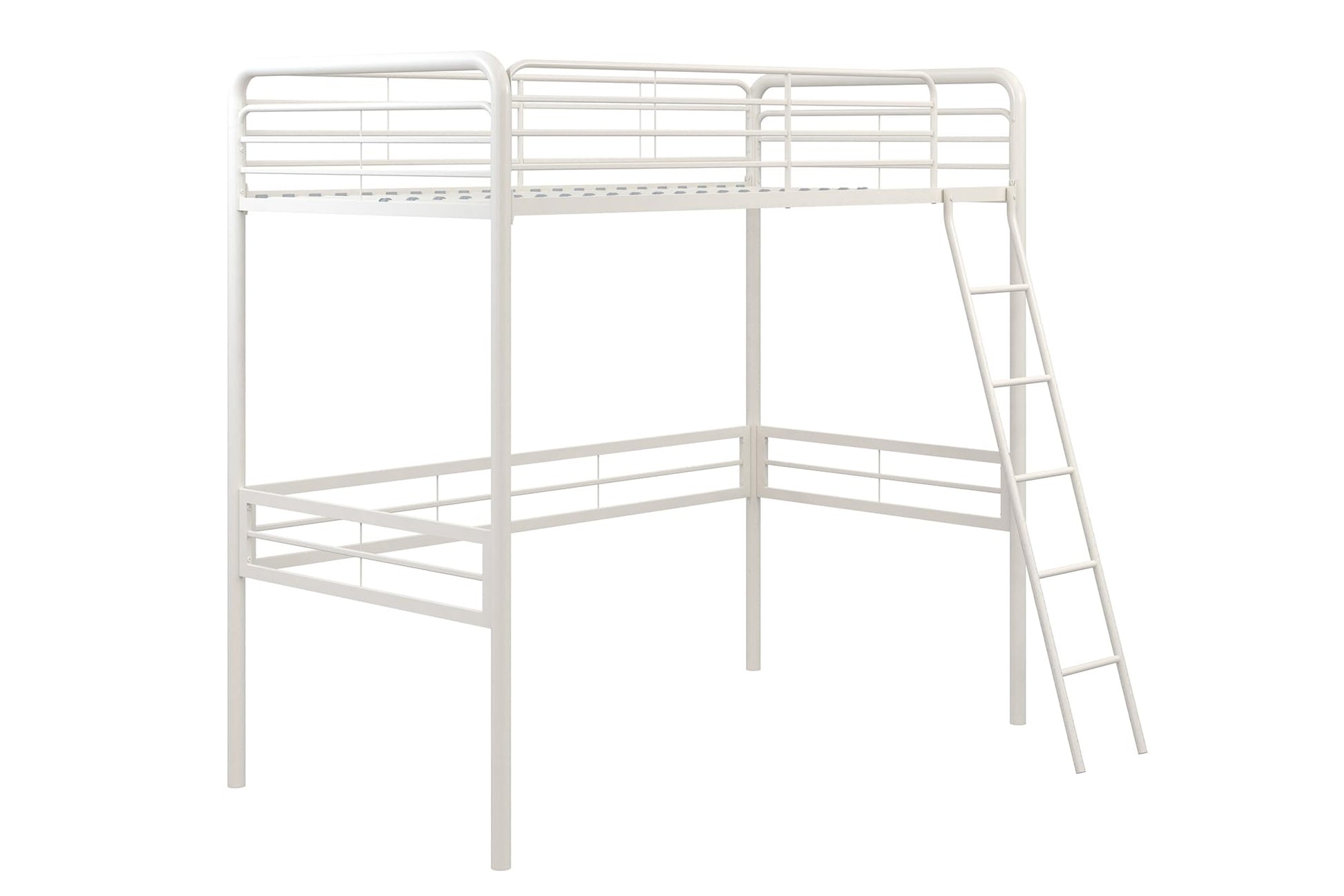 - Durable metal frame construction with secured, slanted ladder. Ideal for maximizing space