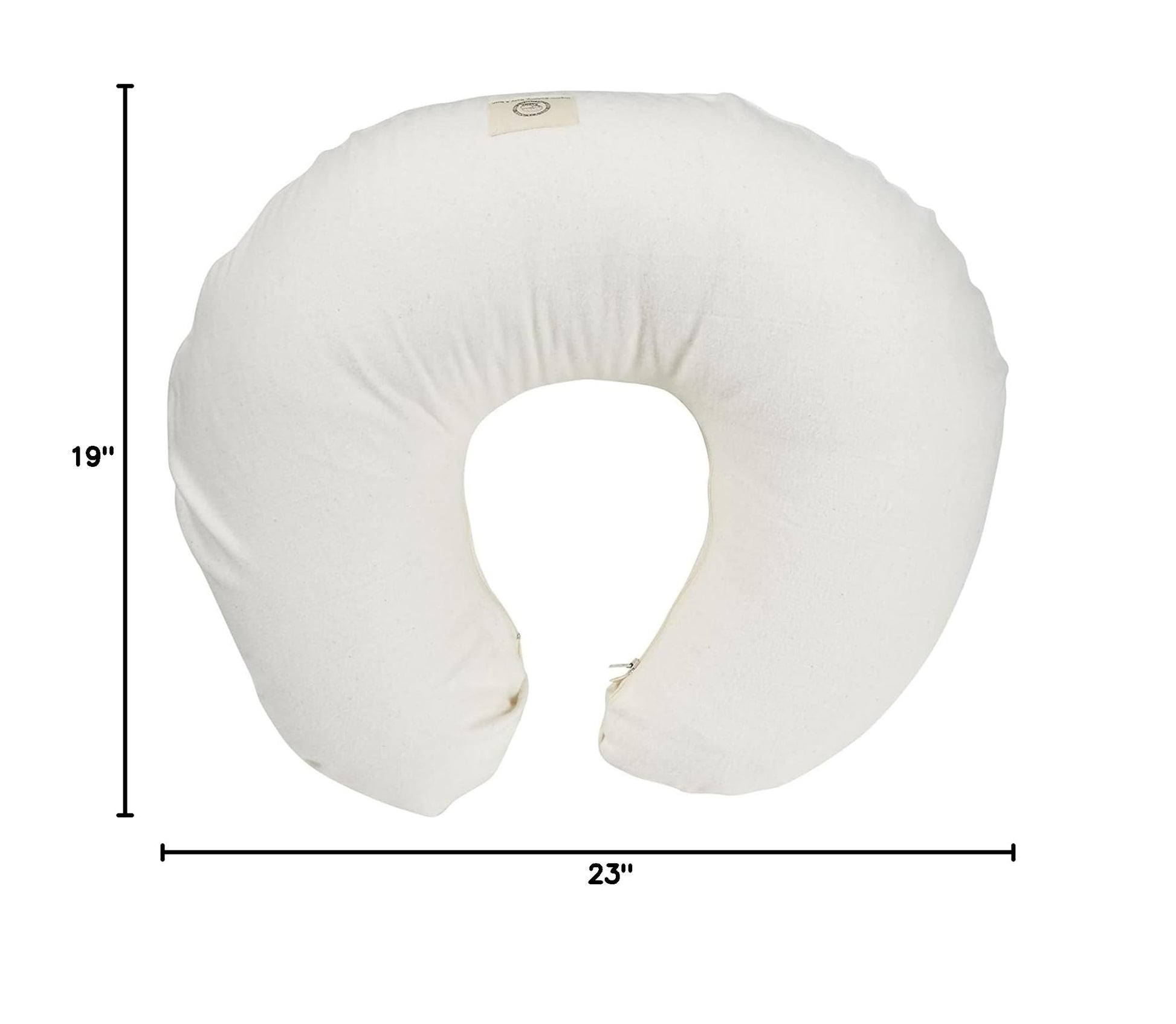 - ERGONOMIC SHAPE AND CONVENIENCE: This organic breastfeeding pillow is 7" high to cradle your baby in the perfect position for latching while reducing arm fatigue and back pain for mom. Thoughtfully designed with the zipper on the outside edge, allowing the pillow to be used comfortably on either side