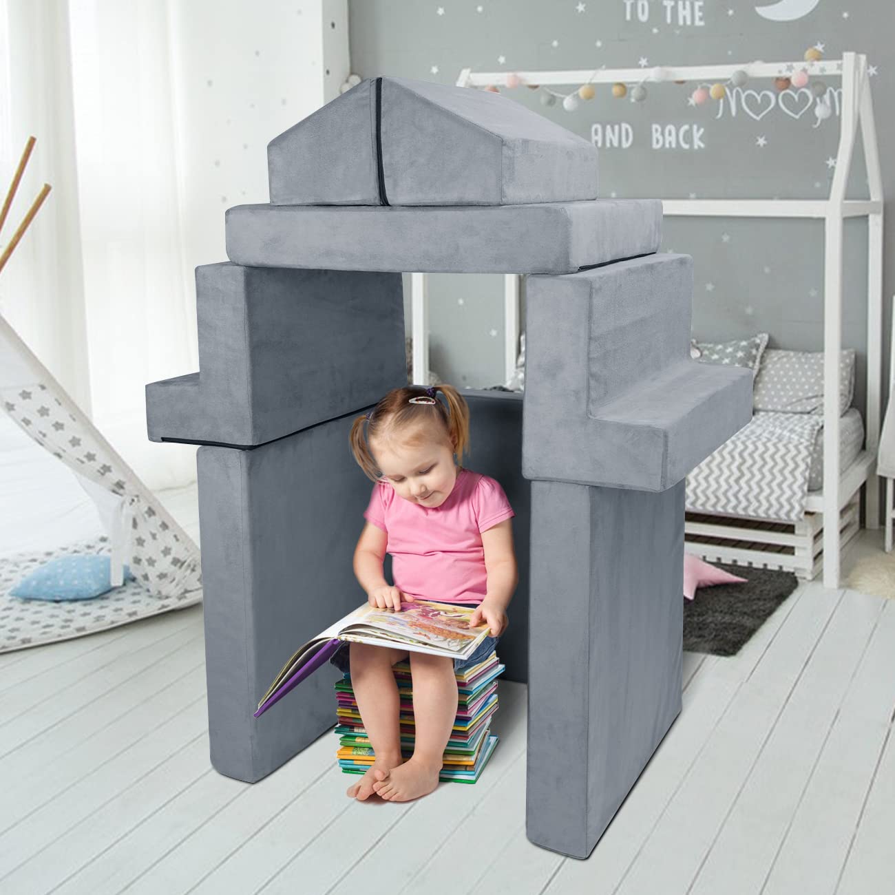- VARIOUS FURNITURE SHAPES: Play Couch comes with 7 modular pieces that can be transformed into countless shapes for rest or play. A toddler couch creates a secret club in a cozy hideaway fort or flips open a luxurious throne chair for your toy kingdom. Modular couch kids can be a chair, fort, tunnel, mat, couch, sofa, or simply anything you want it to be. Children can combine kids' couch for multiple fun.