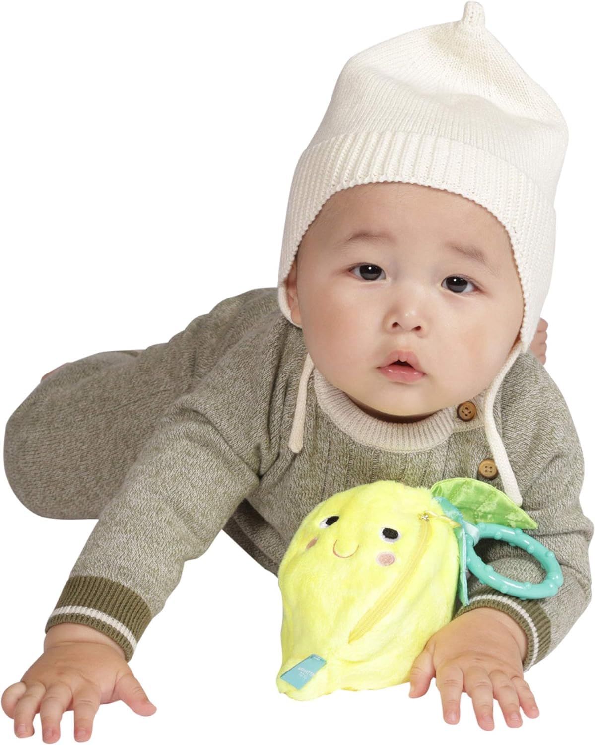 - Fruity fun for little ones; Orange and Lemon Take Along Toys have embroidered facial features and soft fabric fruit slices. Tethered by silky-soft ribbons, each slice includes unique features - rattle, squeaker and crinkle textures. With multiple textured fabrics, silky leaves and interior lining, they easily attach to carriers and more with their textured plastic C-clip that doubles as a teether. Great for on-the-go play while encouraging motor development & cause and effect learning.