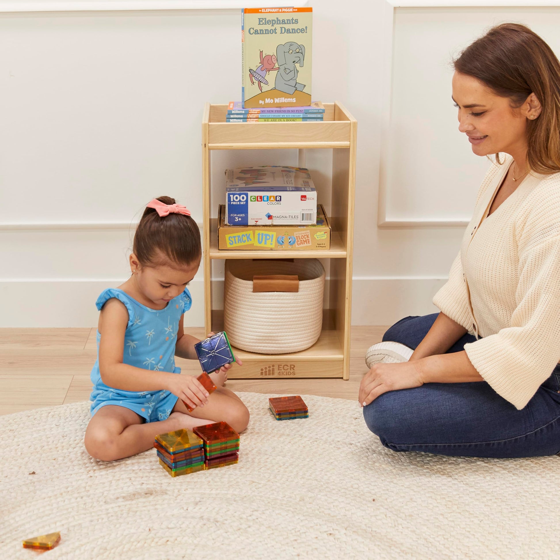- Product Dimensions: Kids bookshelf measures 14.2" W x 15.7" D x 25.5" H, each shelf measures 13" W x 15.2" D x 9.8" H; Adult Active Engaged & Direct Supervision Required