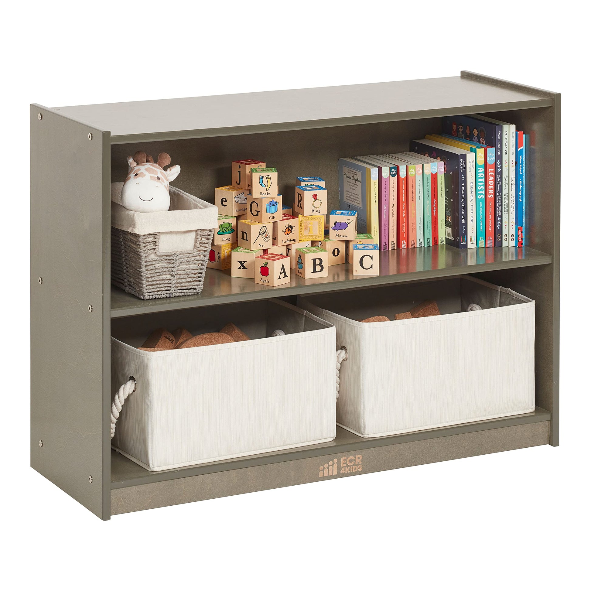 2-Shelf Mobile Storage Cabinet, Classroom Furniture, Grey Wash