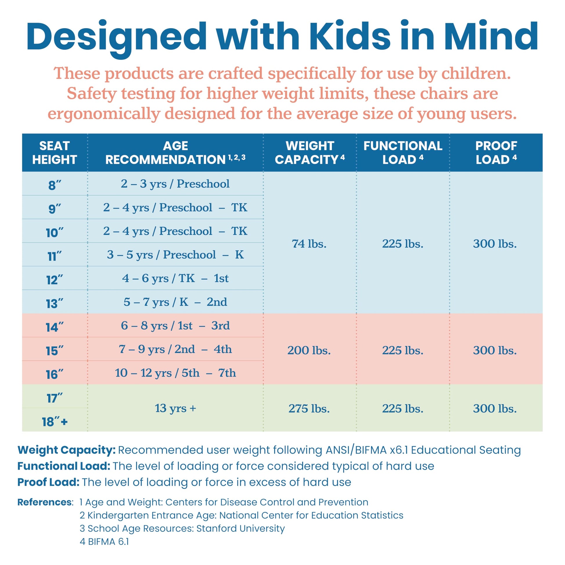 - Certified Safe: Children's furniture is GREENGUARD [GOLD] Certified for low VOCs, CPSIA compliant, meets the requirements of ANSI/BIFMA X6.1 Educational Seating and ANSI/BIFMA X5.5 Desk/Table Products