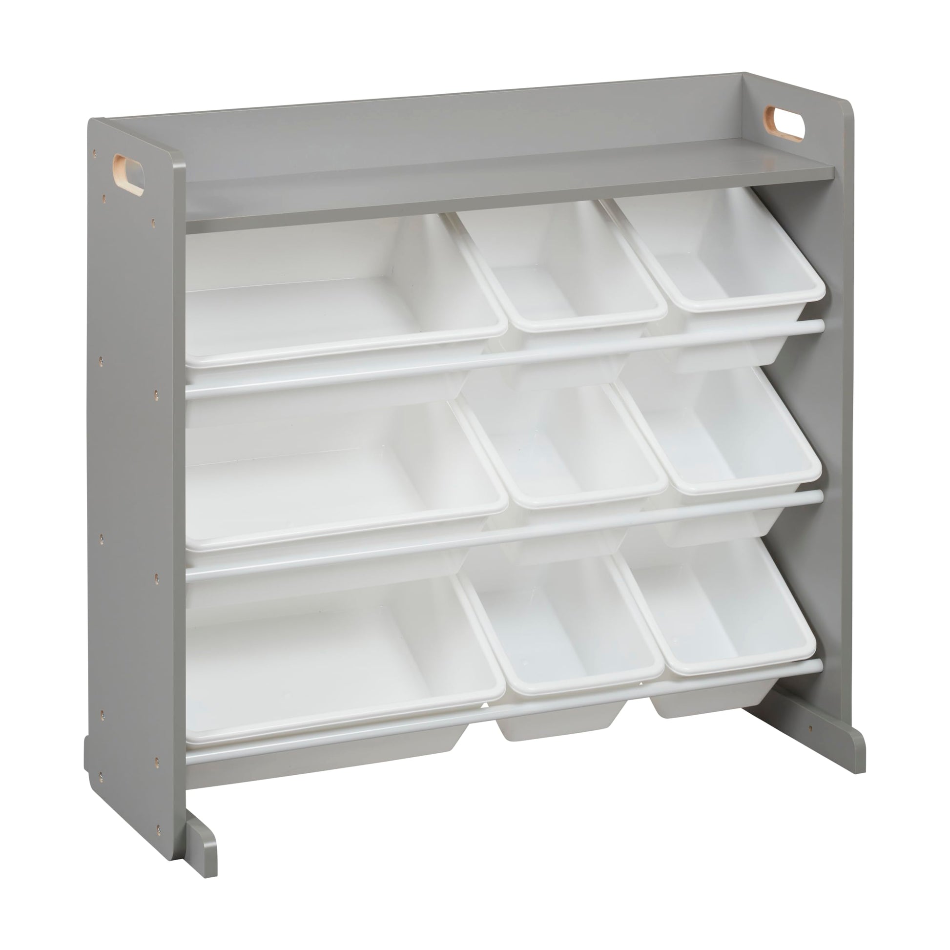 3-Tier Organizer with Shelf and 9 Bins, Toy Storage, Grey/White